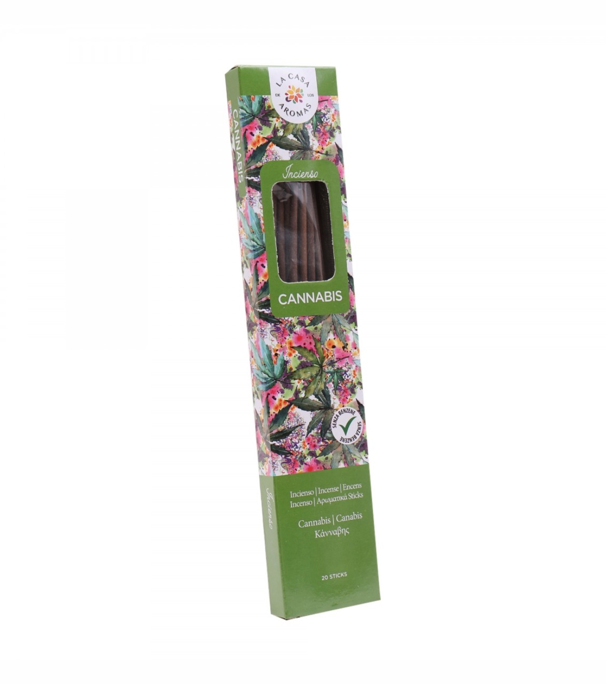 El incienso Cannabis de La Casa de los Aromas es una preparación resinosa enriquecida con aceites esenciales de origen vegetal que, al encenderse, libera un humo fragante ideal para aromatizar espacios y crear ambientes relajantes y envolventes.