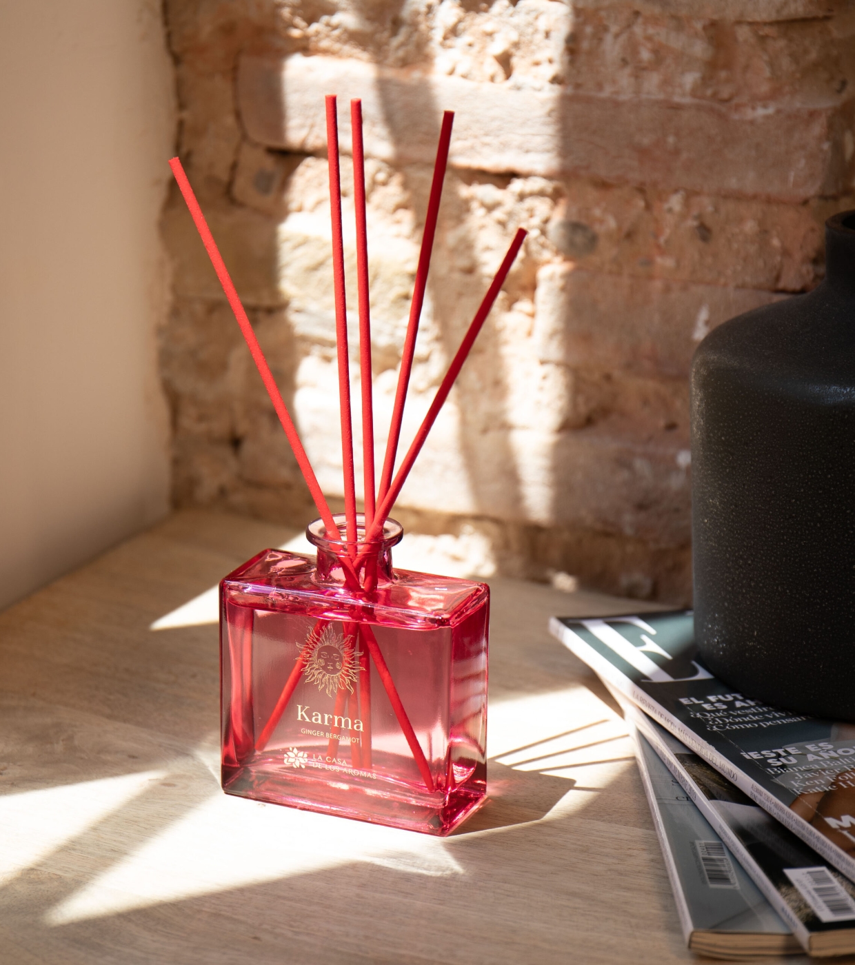 Embárcate en un viaje sensorial con el ambientador mikado Karma Sun de la colección de Mikados Mystic de La Casa de los Aromas, inspirada en la mágica conexión entre la tierra y el cosmos.