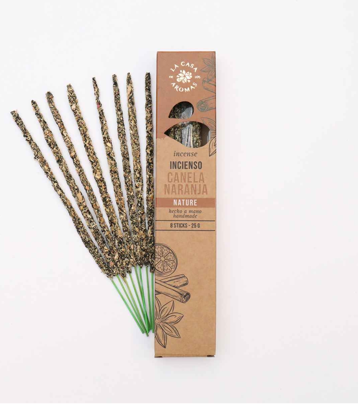 Déjate envolver por un torbellino cálido y especiado, donde la intensidad de la canela se fusiona con la frescura chispeante de la naranja con este incienso de Canela Naranja de La Casa de los Aromas.