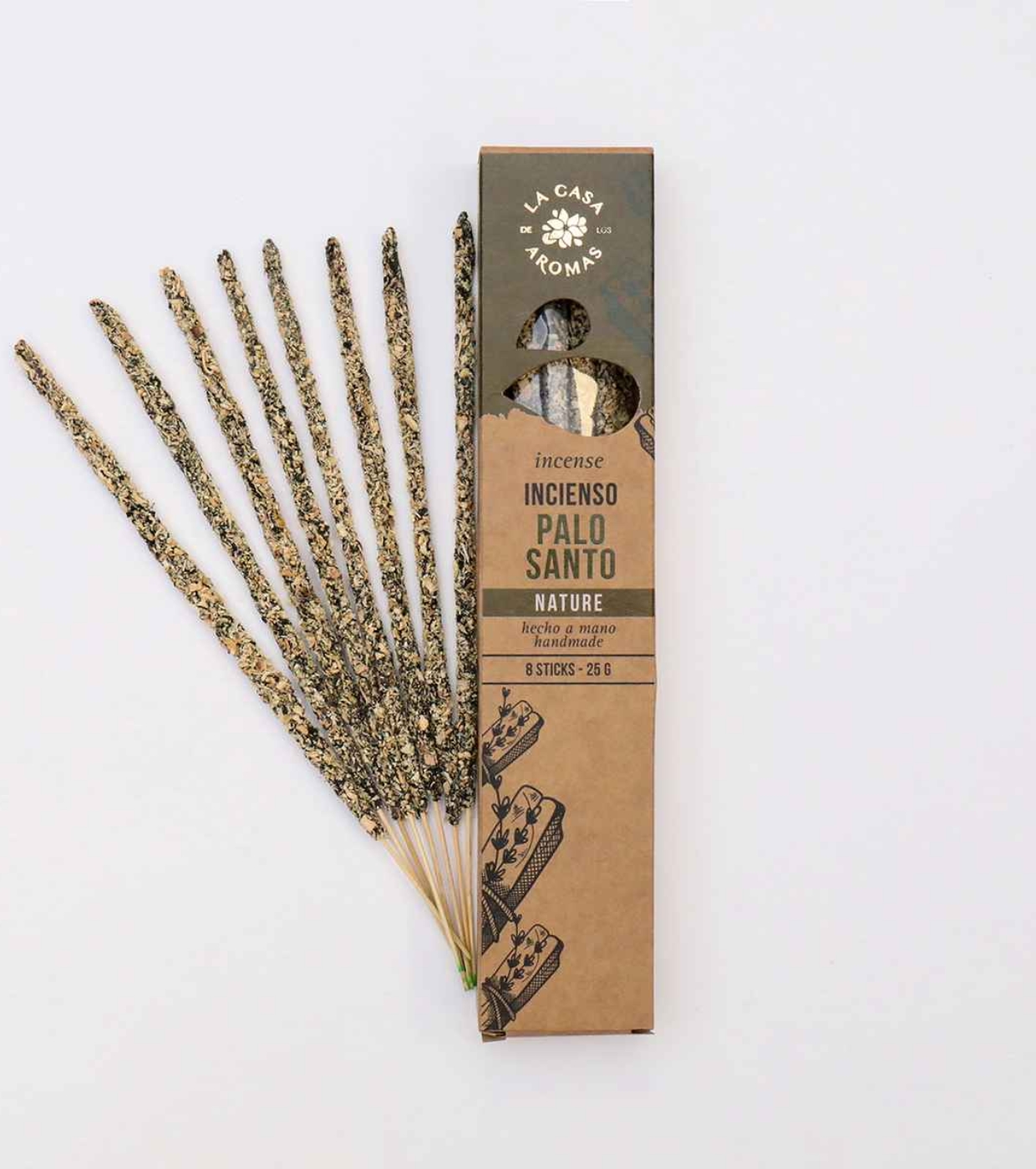 Siente la danza sagrada del palo santo con este incienso de La Casa de los Aromas, una sinfonía de madera ahumada con destellos cítricos y dulces que evoca la espiritualidad de un bosque al atardecer.