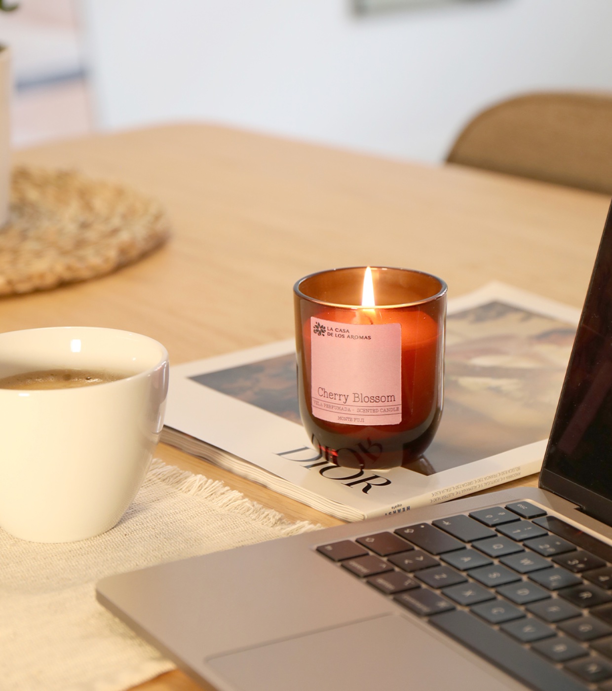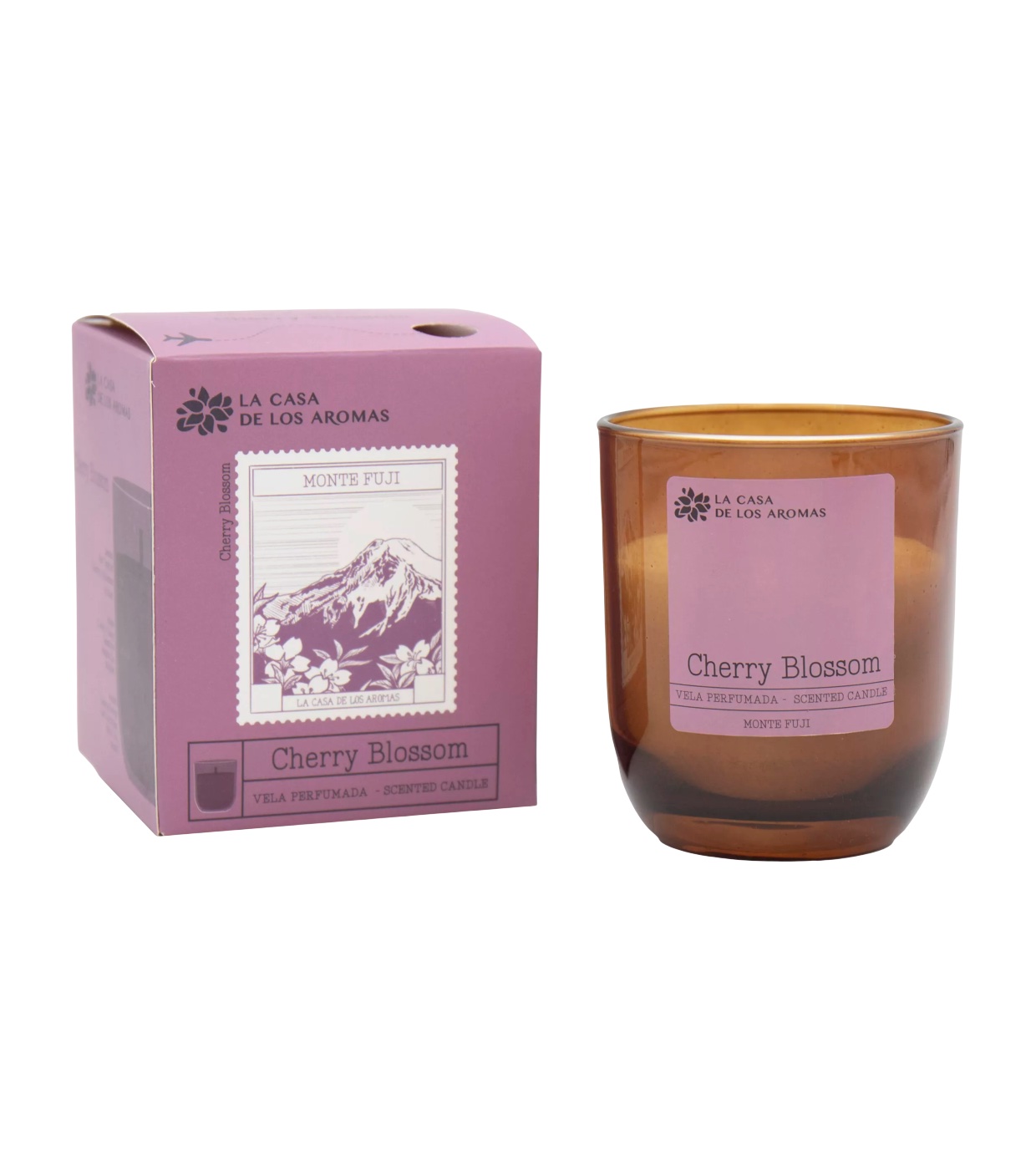Inspirada en uno de los paisajes más icónicos del mundo, la vela aromática Cherry Blossom de la Casa de los Aromas captura la esencia serena del Monte Fuji.