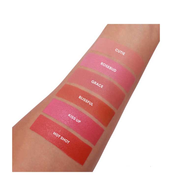 Su textura cremosa es similar a un gel, se funde en la piel aportando un acabado mate suave que agrega un toque de color a las mejillas y los labios.