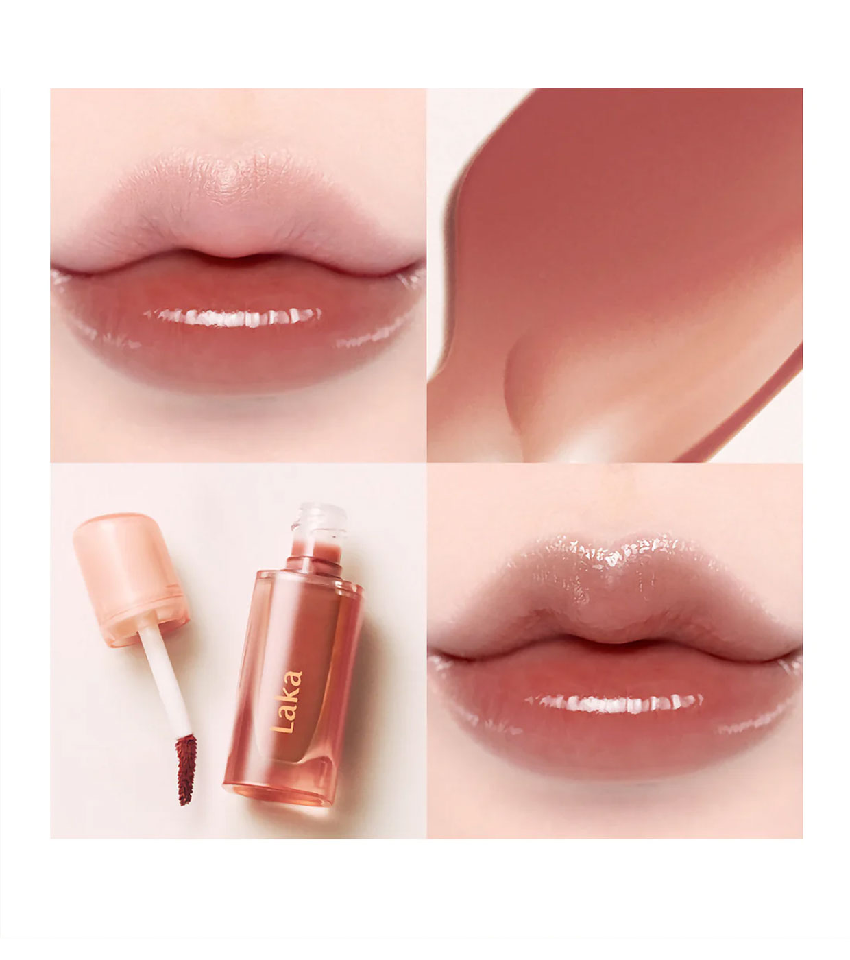 Jelling Nude Gloss de Laka aporta color, hidratación y brillo en una textura suave y cremosa súper cómoda de llevar.