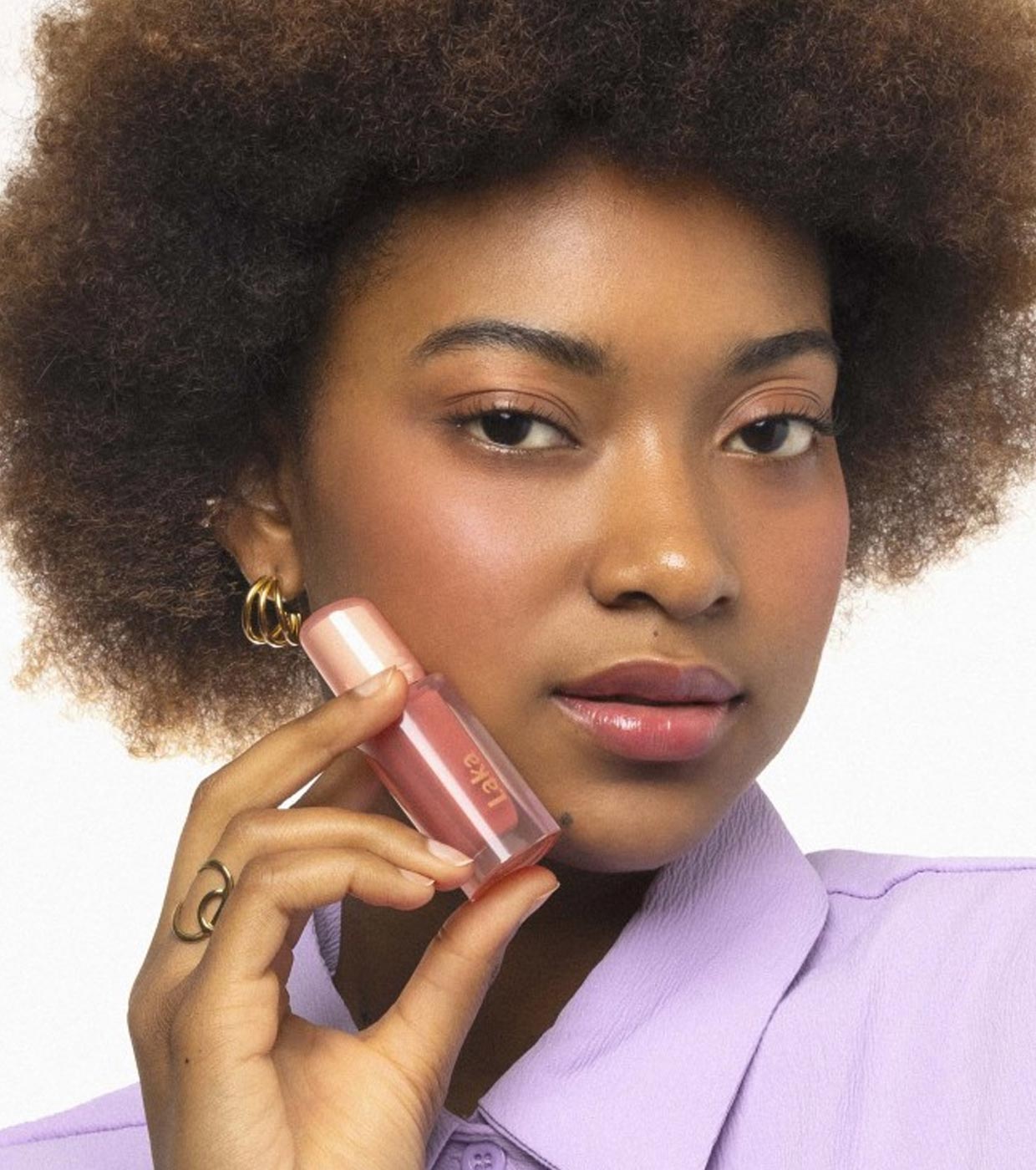 Jelling Nude Gloss de Laka aporta color, hidratación y brillo en una textura suave y cremosa súper cómoda de llevar.