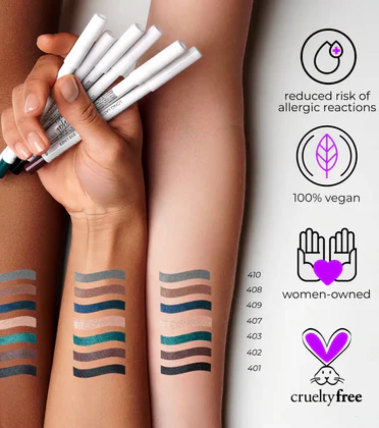 Su textura suave y cremosa se aplica fácilmente sin irritar el párpado y se difumina a la perfección para lograr tanto looks definidos como ahumados.