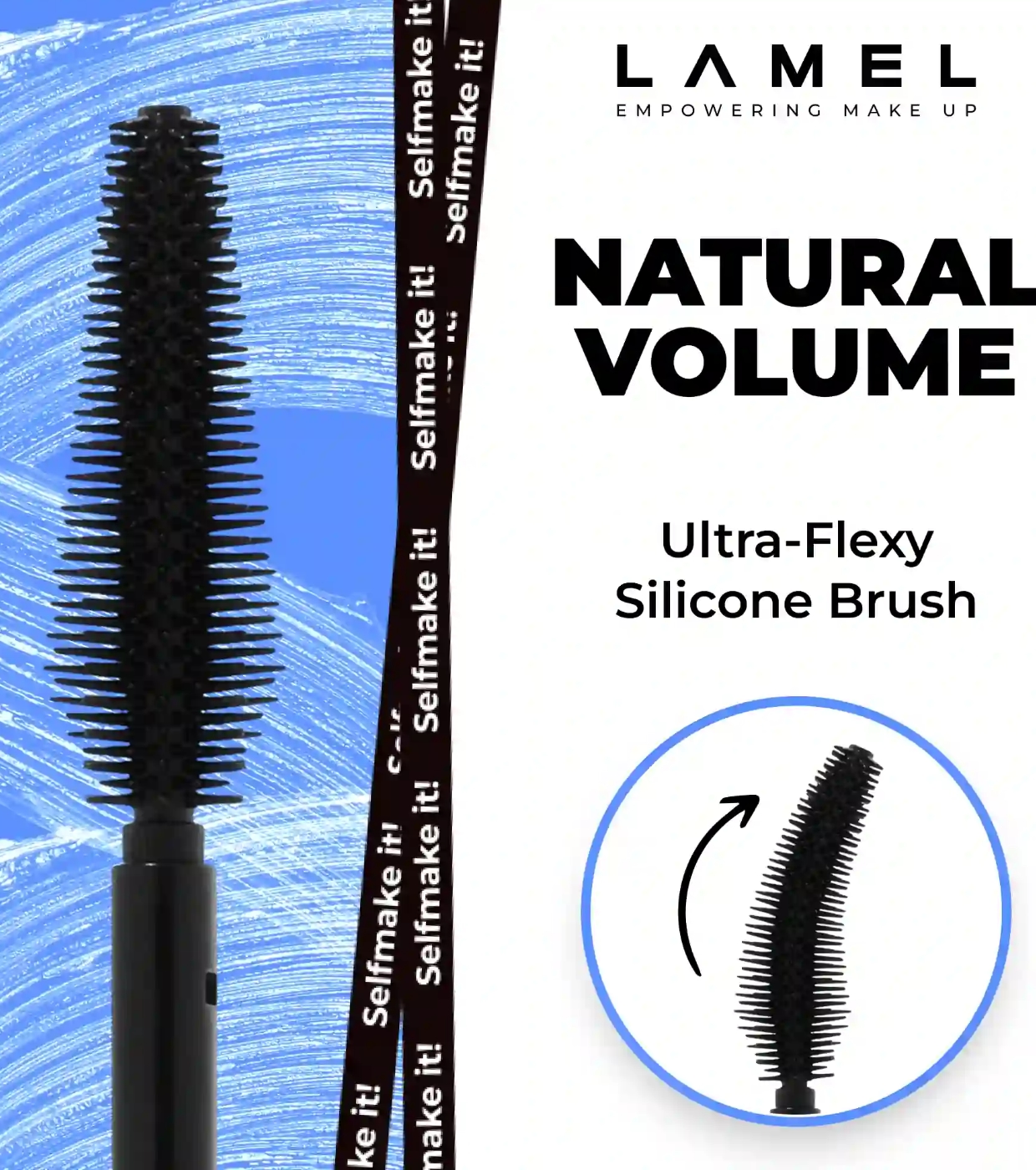 Su cepillo de silicona de forma especial, con cerdas de diferentes longitudes, envuelve cada pestaña para crear un volumen máximo, separación perfecta y una curvatura impactante.