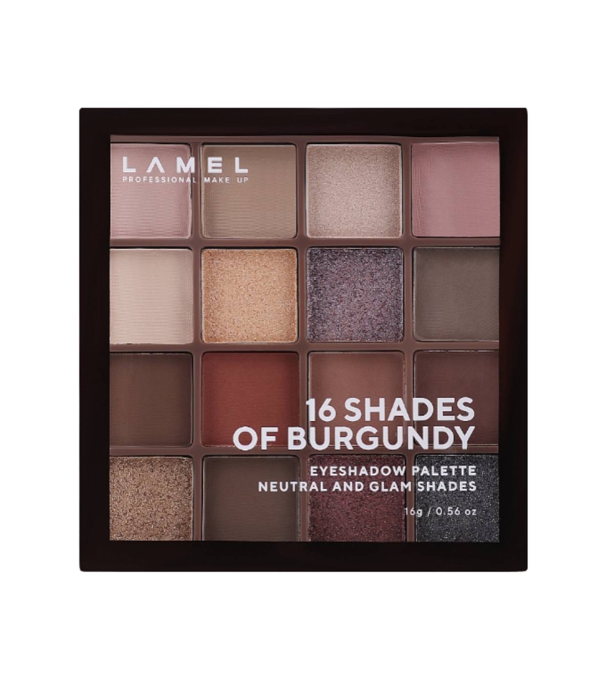 Perfectamente combinados en colores, la paleta de sombras de 16 tonos Burgundy de Lamel, te ahorrará la difícil elección de con qué otros tonos combinarlos.