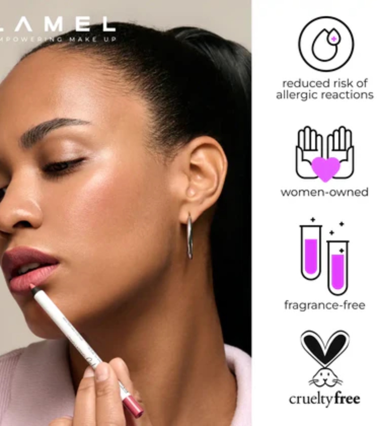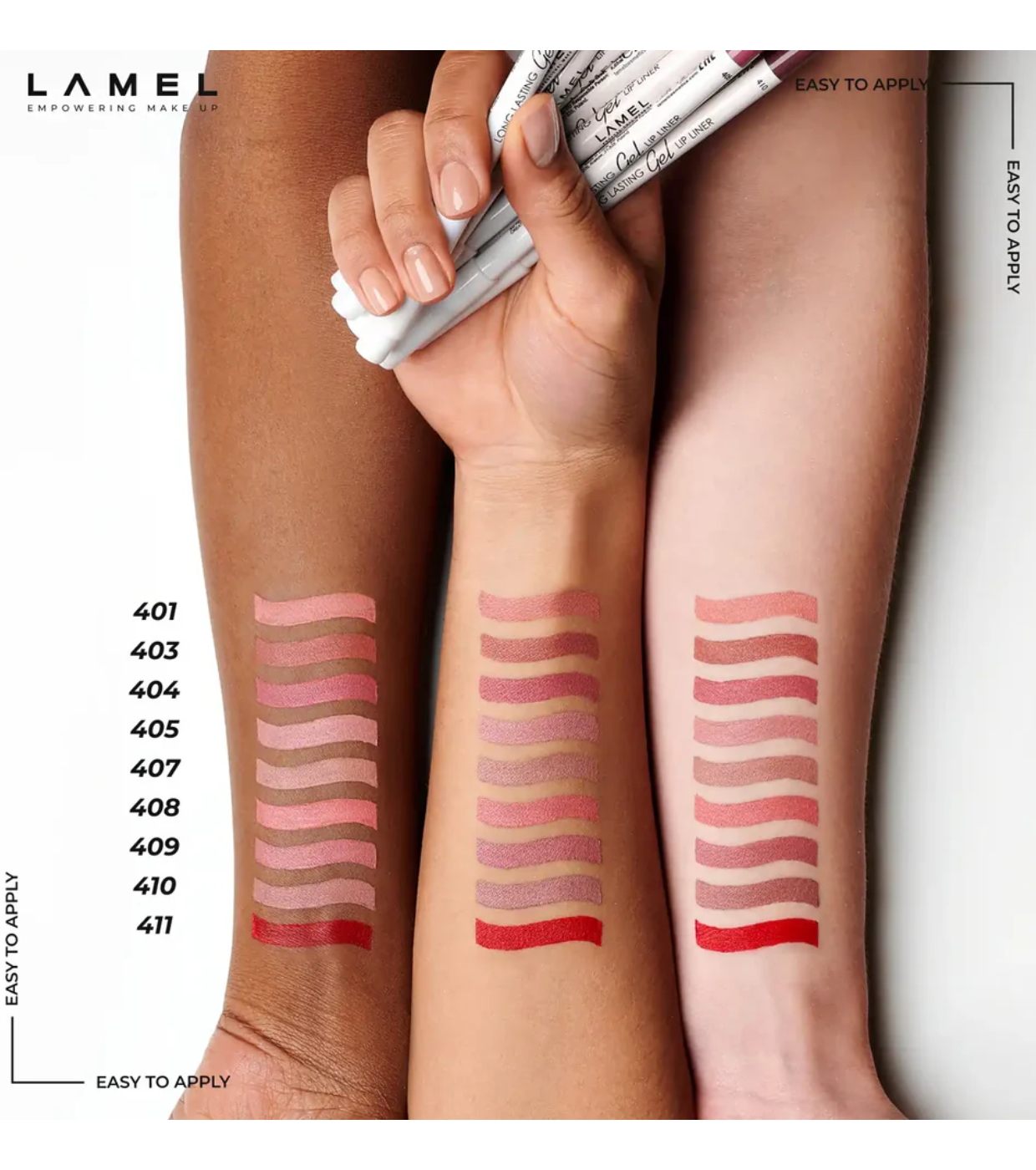 El perfilador de labios en gel de larga duración de Lamel tiene una delicada consistencia en gel que garantiza una aplicación uniforme y precisa, permaneciendo intacto durante todo el día.