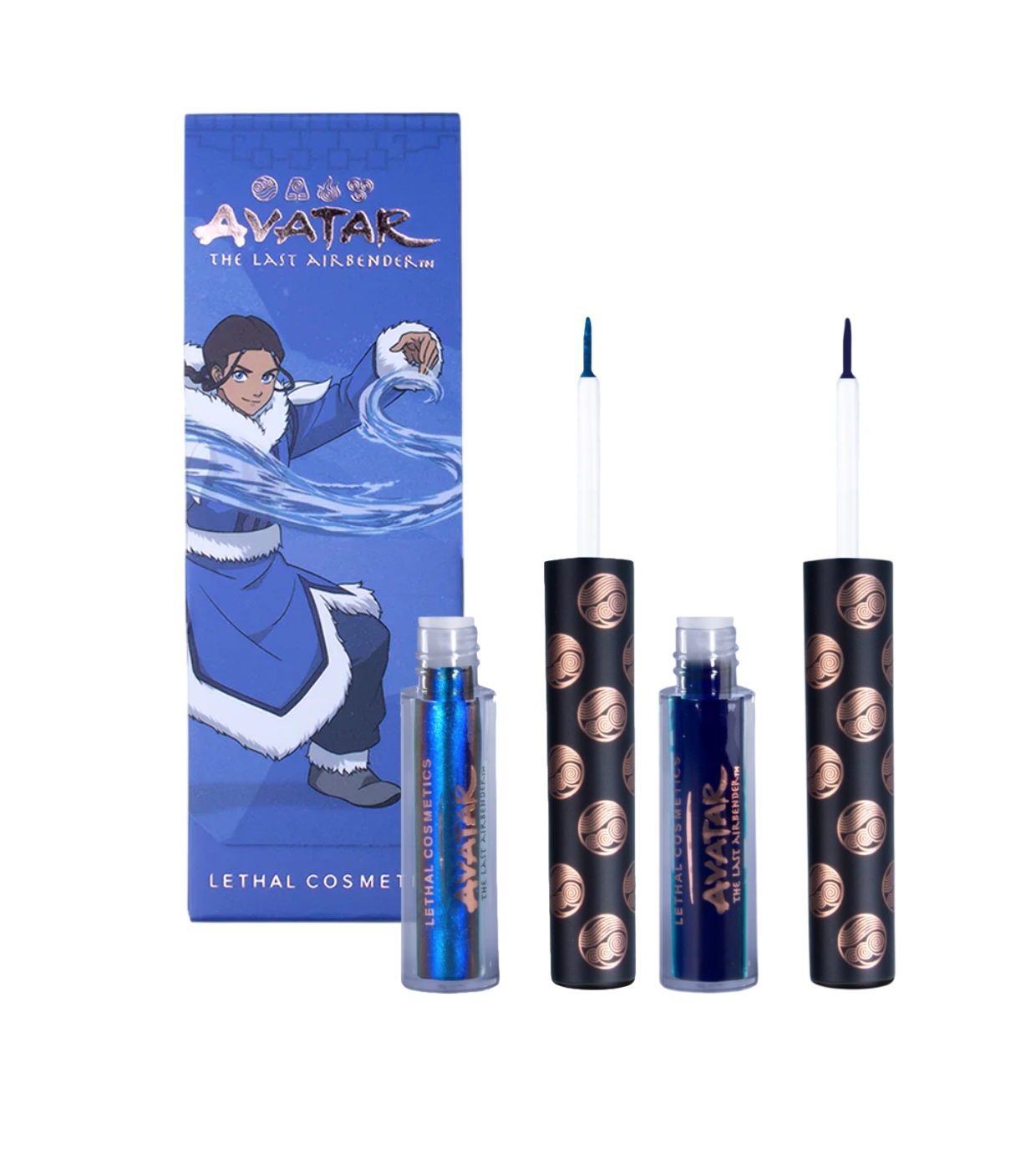 La personalidad del agua, capturada en un elegante set de delineadores de Lethal Cosmetics que combina dos contrastes perfectos: un tono mate sereno y un acabado multicromo dinámico, inspirado en el flujo, la calma y la fuerza del elemento agua.