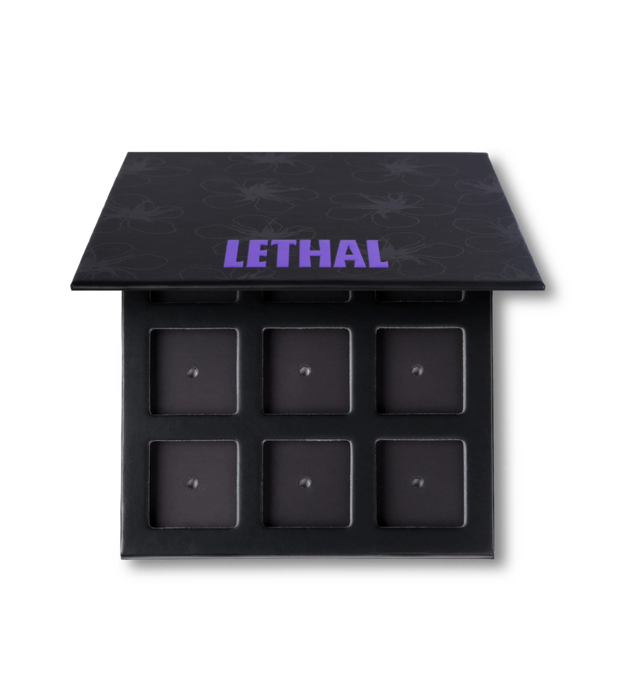 La paleta magnética Oleander 9 de Lethal Cosmetics es una paleta compacta, resistente y totalmente personalizable para 9 sombras de ojos o delineadores de agua, diseñada por nuestro maquillador interno.