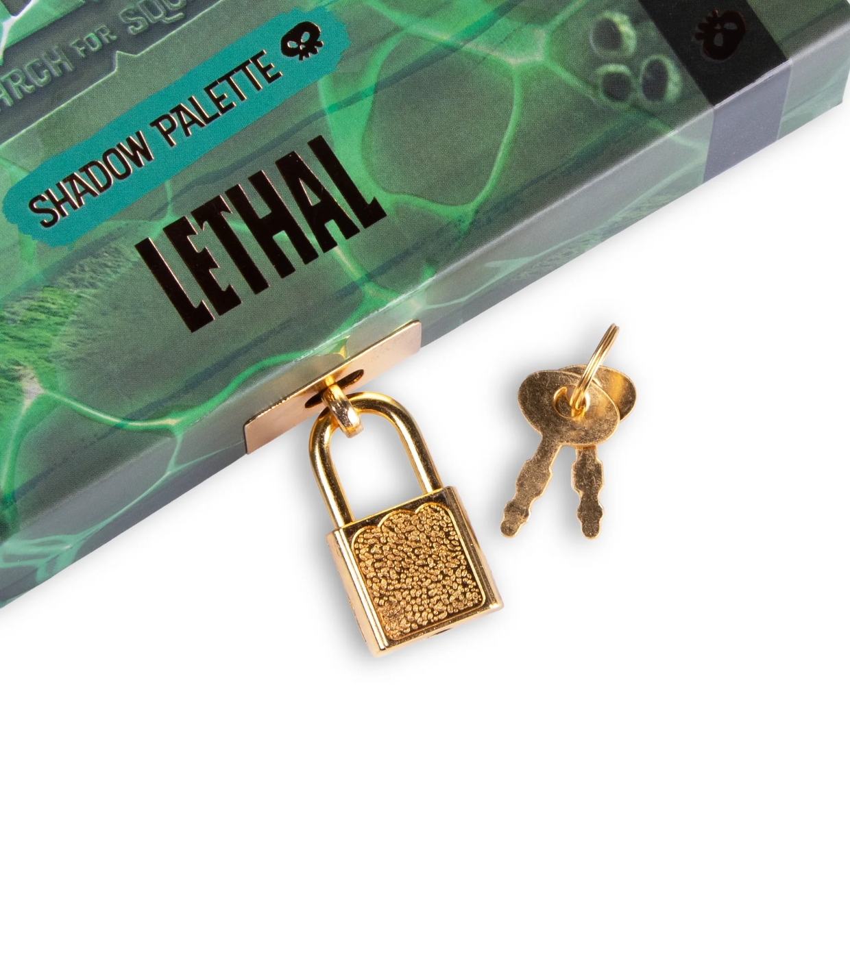 La paleta The SpongeBob Movie de Lethal Cosmetics llega en un diseño inspirado en un cofre del tesoro, con detalles de tablones de madera, logo oficial de la película, remaches en forma de calavera y un cierre físico real que la hace aún más especial.