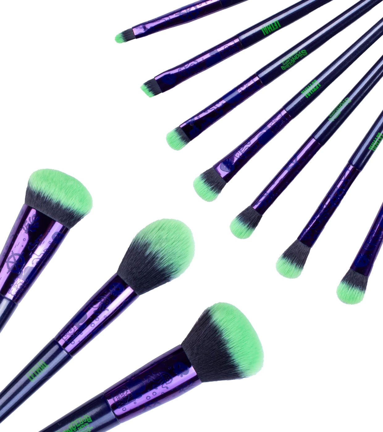 Incluye 10 brochas veganas con cerdas degradadas del verde al negro, detalles de marca en foil verde neón y un diseño exclusivo que refleja la oscuridad y el misterio del Underworld, aportando un acabado lujoso y de alta calidad.