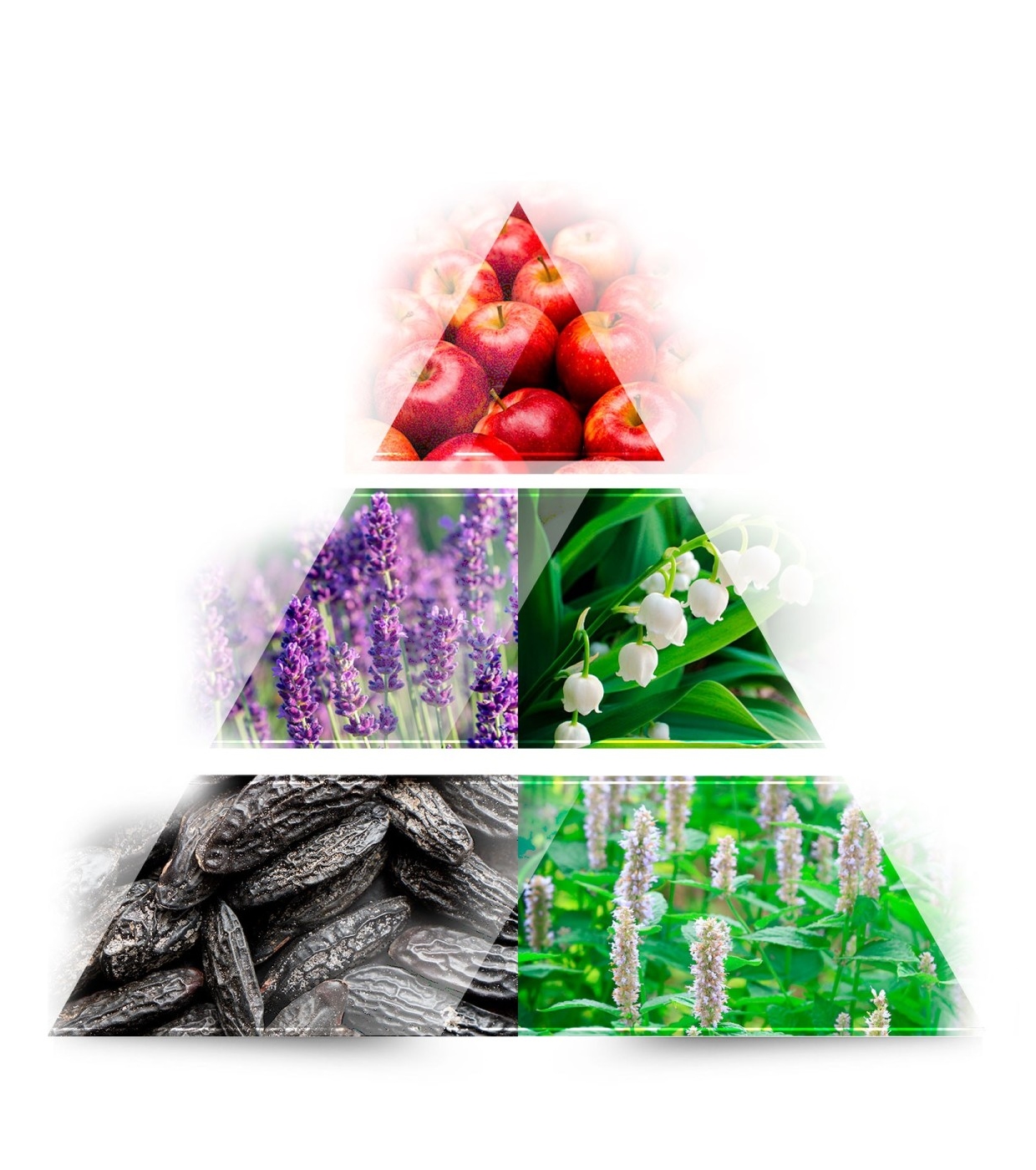 En el corazón, la lavanda se combina con el lirio de los valles y la violeta, creando un acorde aromático elegante y con carácter.