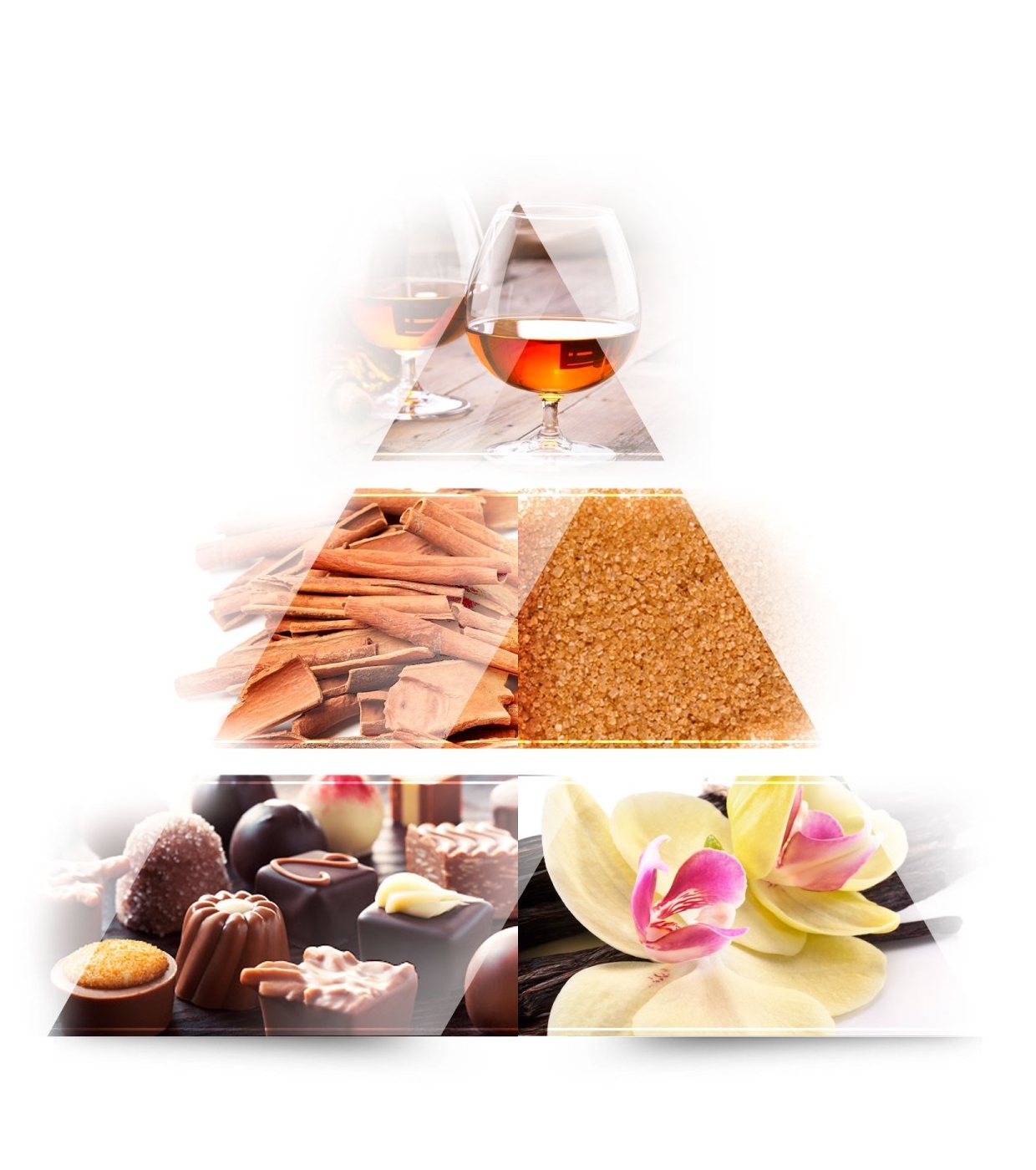 El fondo se vuelve sofisticado y cremoso gracias a la praliné y la vainilla, enriquecidas con sándalo, haba tonka y ámbar, que dejan una estela aterciopelada e inconfundible.