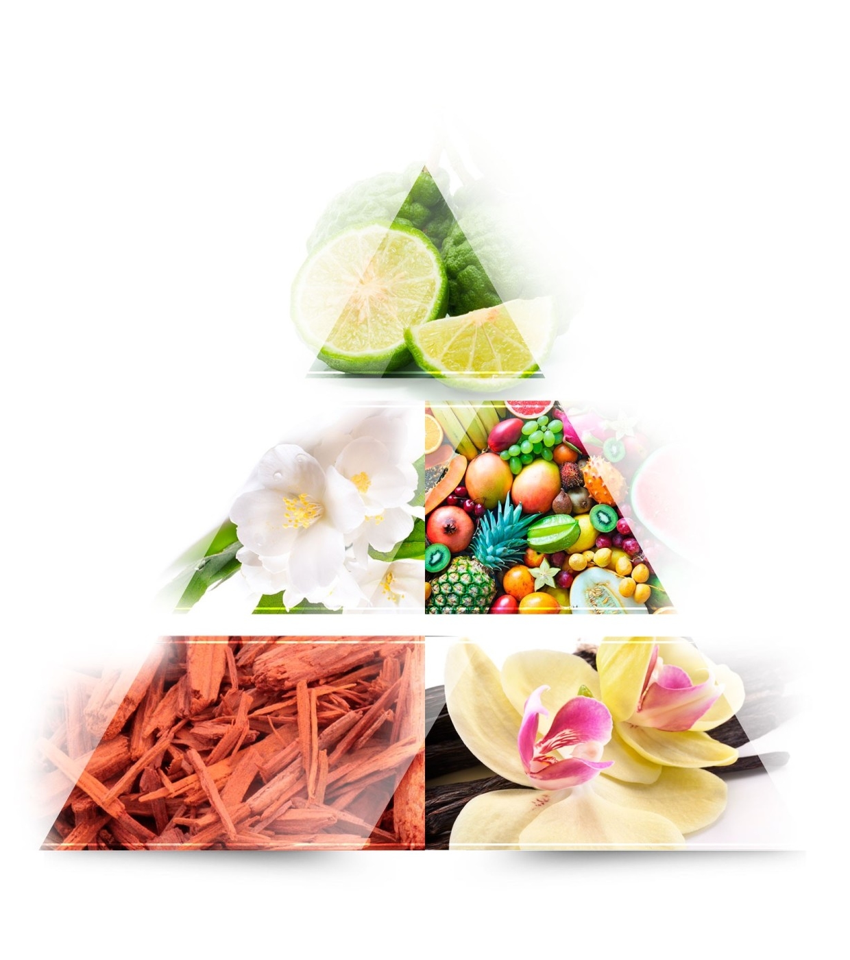 En el corazón, las frutas tropicales se mezclan con un delicado acorde floral de jazmín y violeta, creando un equilibrio entre frescura y suavidad. En el fondo, las notas de sándalo, cachemira, ámbar gris y vainilla aportan profundidad, sensualidad y una estela duradera.