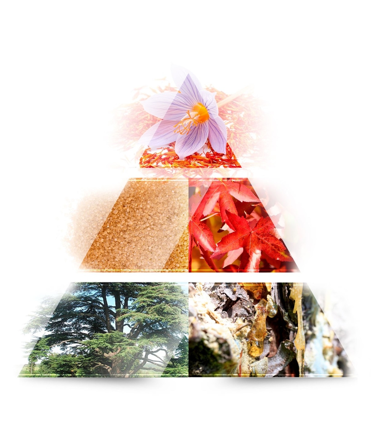 Su apertura mezcla la riqueza del azafrán con el jazmín, la almendra y un toque cítrico de naranja, creando un inicio luminoso y refinado.
