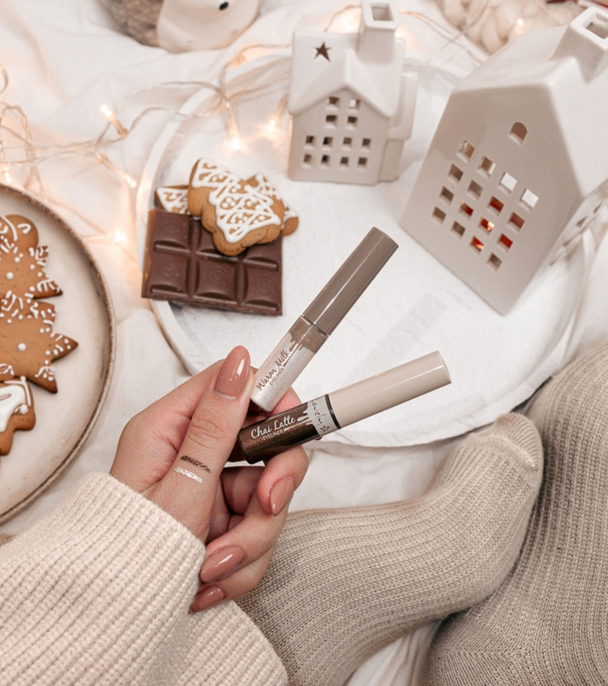 El color marrón intenso y el acabado metalizado resaltan la profundidad de la mirada, destacando la línea de las pestañas y el contorno de los ojos.