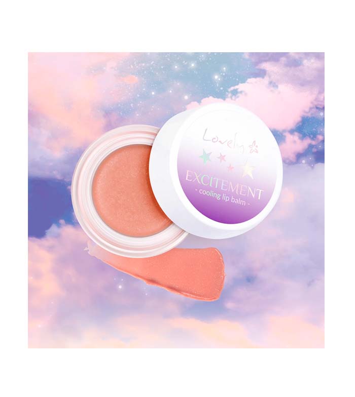 Bálsamo labial nutritivo con partículas iridiscentes y efecto refrescante.