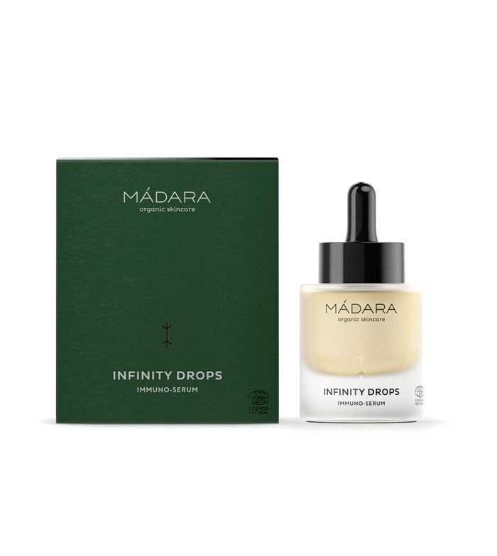 Sérum inmune Infinity Drops de Mádara estimulante de la inmunidad que trabaja para reforzar la barrera protectora de la piel y equilibrar su microbioma.