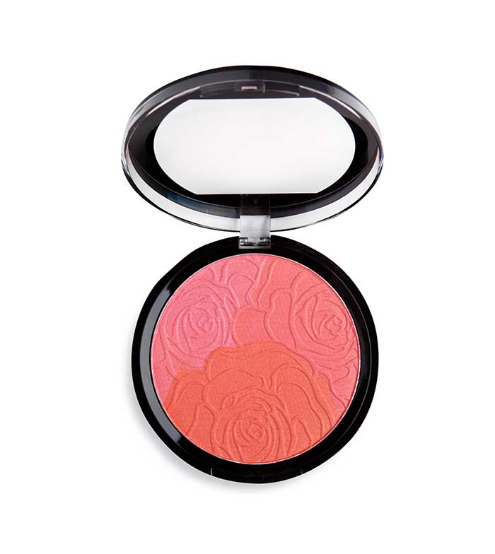 Este precioso colorete en tres tonos distintos de rosa (empolvado, rosa claro y coral) con suaves partículas de shimmer.