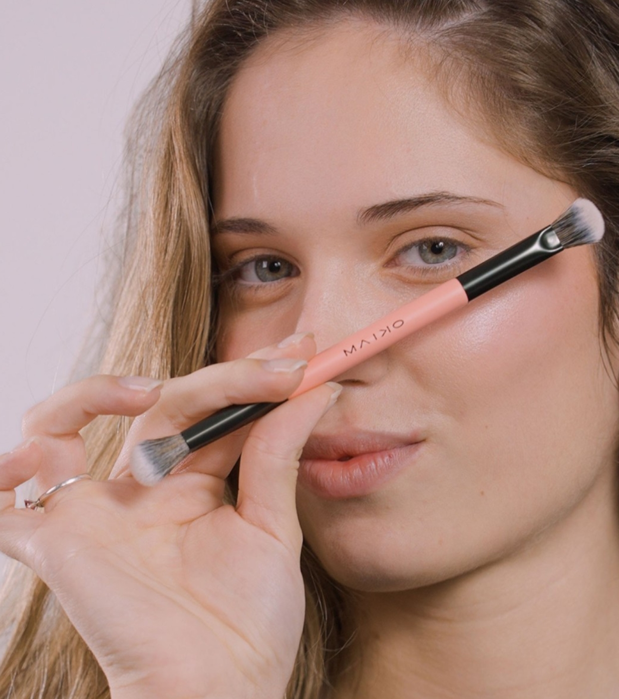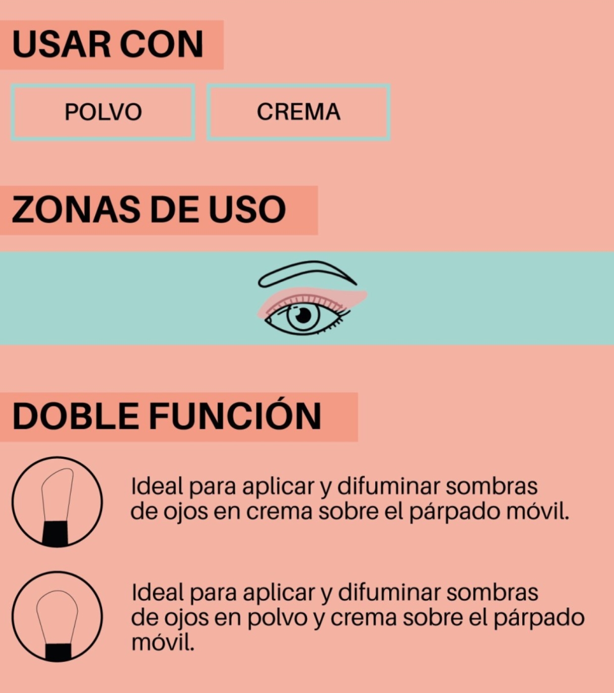 Su diseño doble 2 en 1 combina un extremo biselado, ideal para trabajar texturas cremosas, y un extremo suelto, perfecto para difuminar sombras en polvo y suavizar transiciones entre tonos.