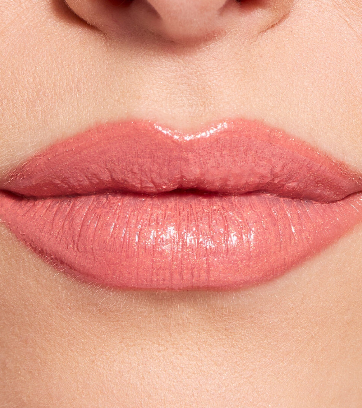 - El pigmento de una barra de labios se combina con un brillo superbrillante.