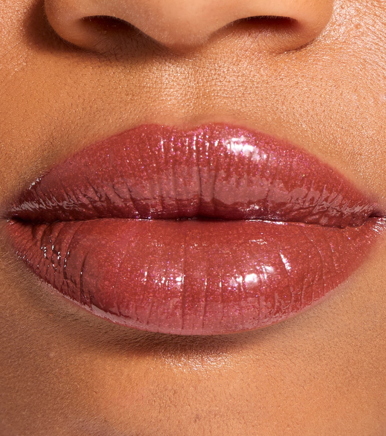 - El pigmento de una barra de labios se combina con un brillo superbrillante.