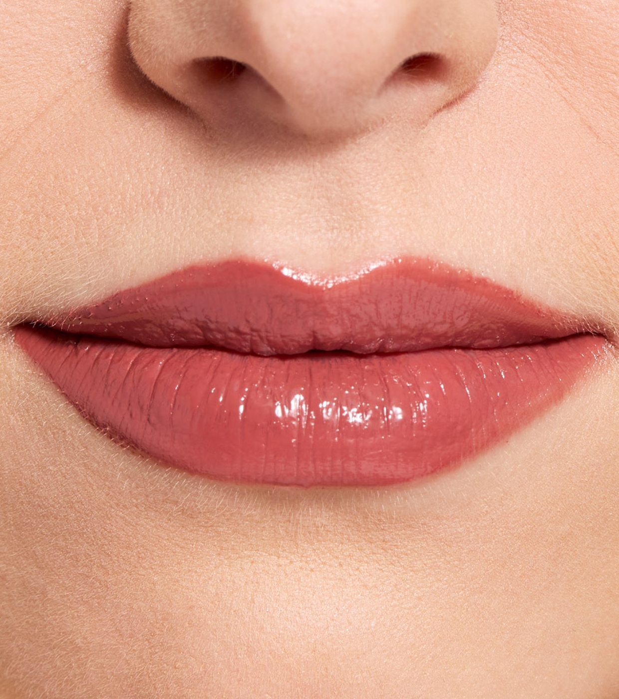 • El pigmento de una barra de labios se combina con un brillo superbrillante.