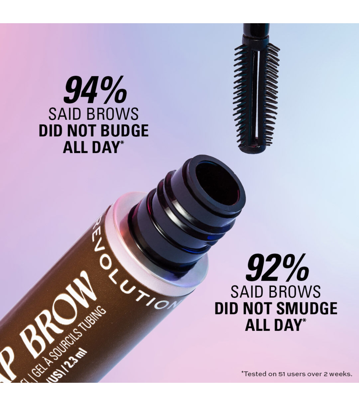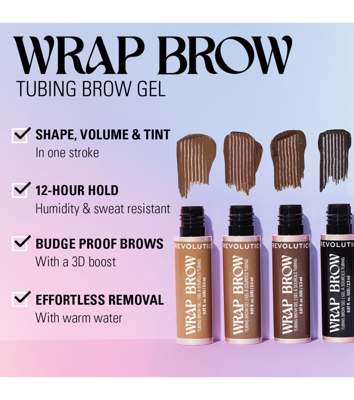 Define, fija y da color a tus cejas en un solo paso con gel para cejas Wrap Brow de Revolution, un gel innovador con tecnología tubing que envuelve cada vello para crear un efecto 3D más denso, definido y natural.