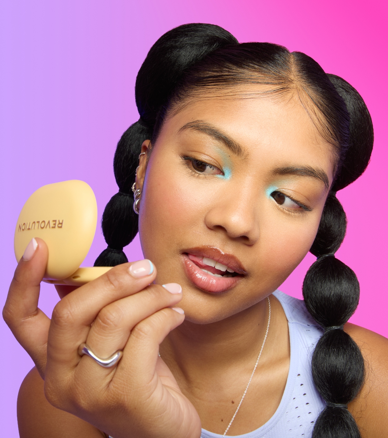 Tu aliado imprescindible: Polvos compactos + Agarre adhesivo para el móvil Powder Pops de Revolution un polvo compacto con un agarre adhesivo para el móvil, diseñado para que puedas acoplarla a tu móvil y llevar tu glow contigo a todas partes.