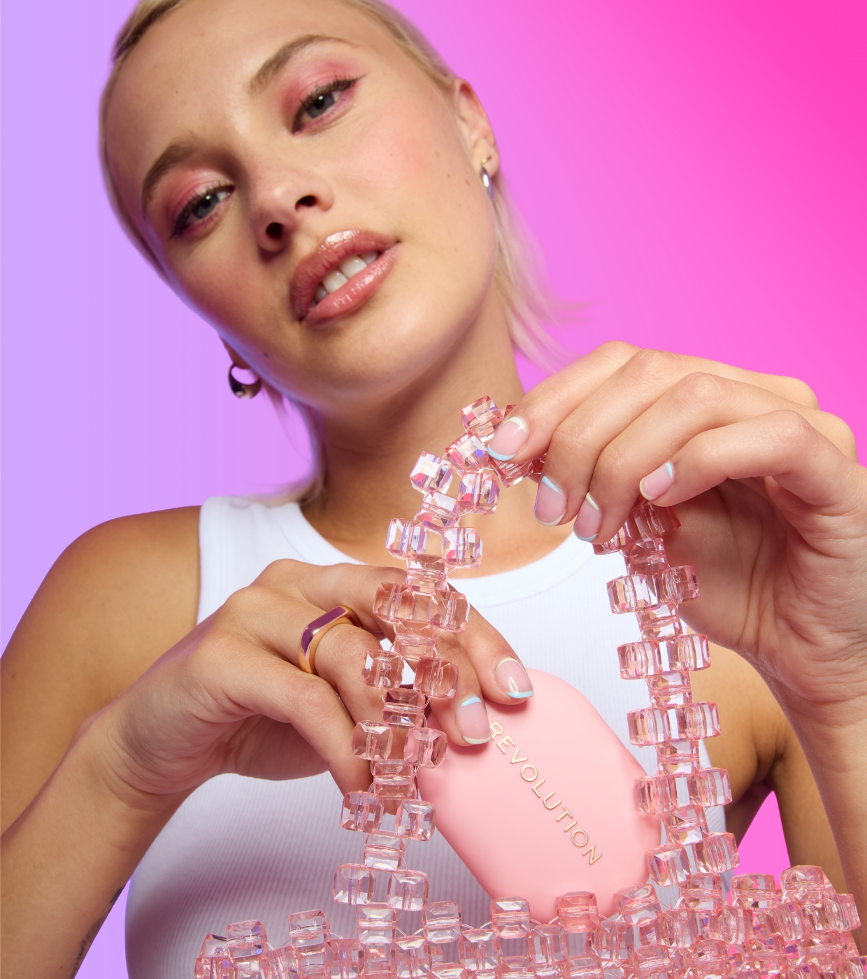 Tu aliado imprescindible: Polvos compactos + Agarre adhesivo para el móvil Powder Pops de Revolution un polvo compacto con un agarre adhesivo para el móvil, diseñado para que puedas acoplarla a tu móvil y llevar tu glow contigo a todas partes.