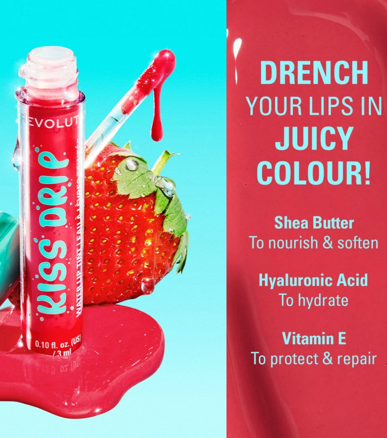 Tus labios, pero con más glow. El Kiss Drip Water Lip Tint de Revolution aporta un toque de color ligero y modulable con un acabado brillante tipo “efecto agua”, como un resplandor fresco de mañana… pero en tus labios.