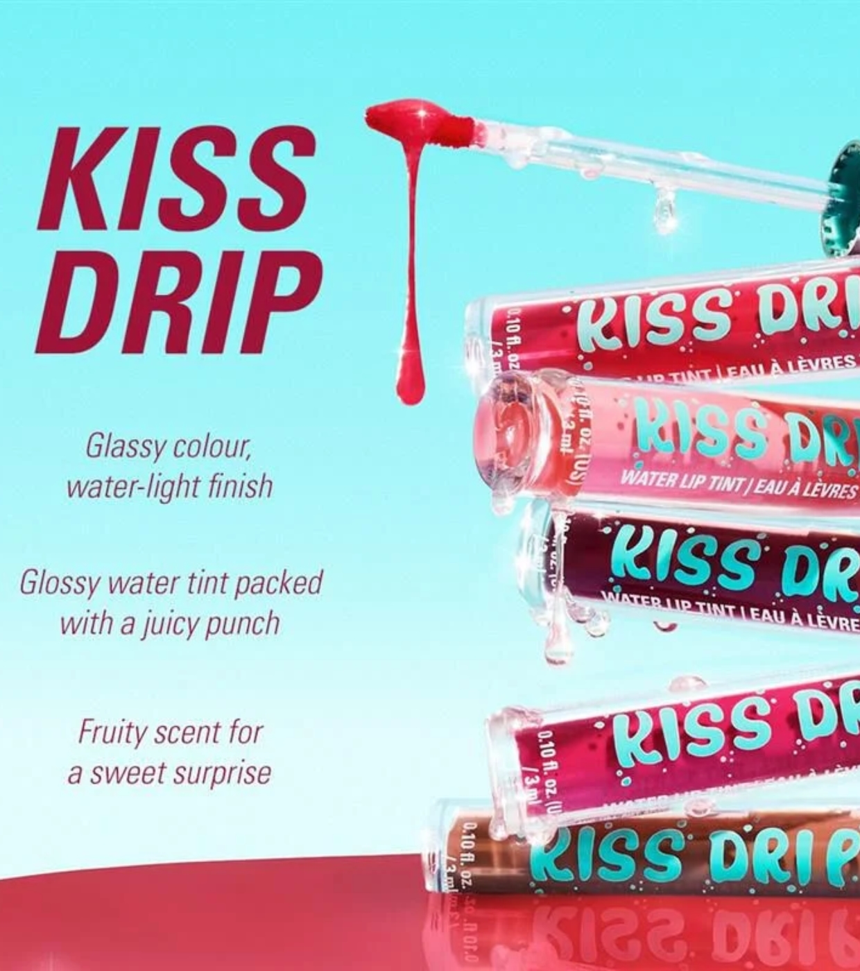 Tus labios, pero con más glow. El Kiss Drip Water Lip Tint de Revolution aporta un toque de color ligero y modulable con un acabado brillante tipo “efecto agua”, como un resplandor fresco de mañana… pero en tus labios.