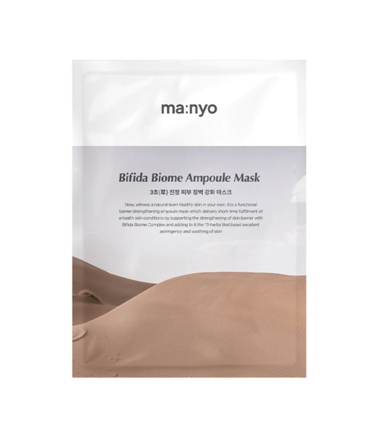 Manyo Bifida Biome Ampoule Mask es una mascarilla facial de un solo uso que aporta un tratamiento intensivo reparador y calmante gracias a su alta concentración de fermentos probióticos.