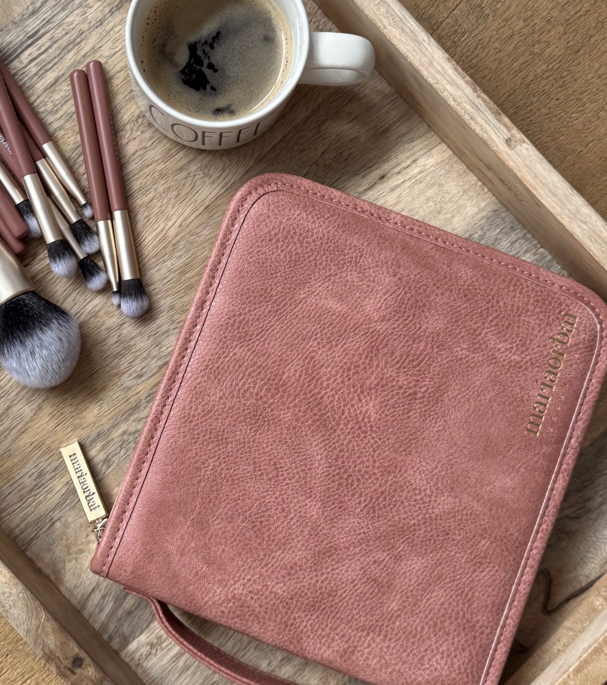 Descubre el neceser de brochas Brownie Pink de Maria Orbai perfecto para brochas de maquillaje, diseñado para mantener tus herramientas favoritas organizadas, protegidas y siempre a mano.
