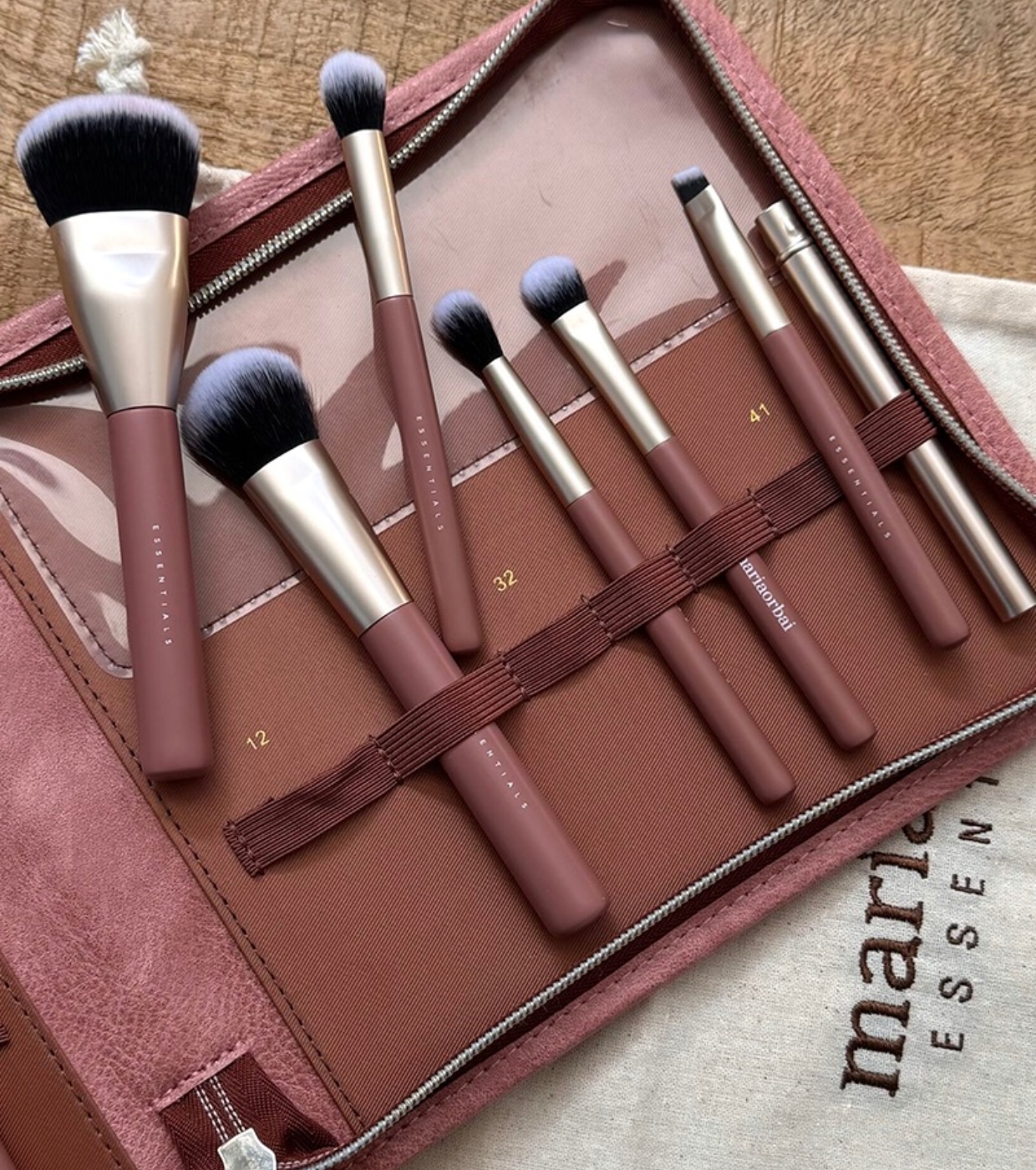 Las brochas se mantienen firmes y ordenadas gracias a las gomas elásticas diseñadas a medida, lo que facilita guardarlas y sacarlas en cualquier momento sin enredos ni desorden.