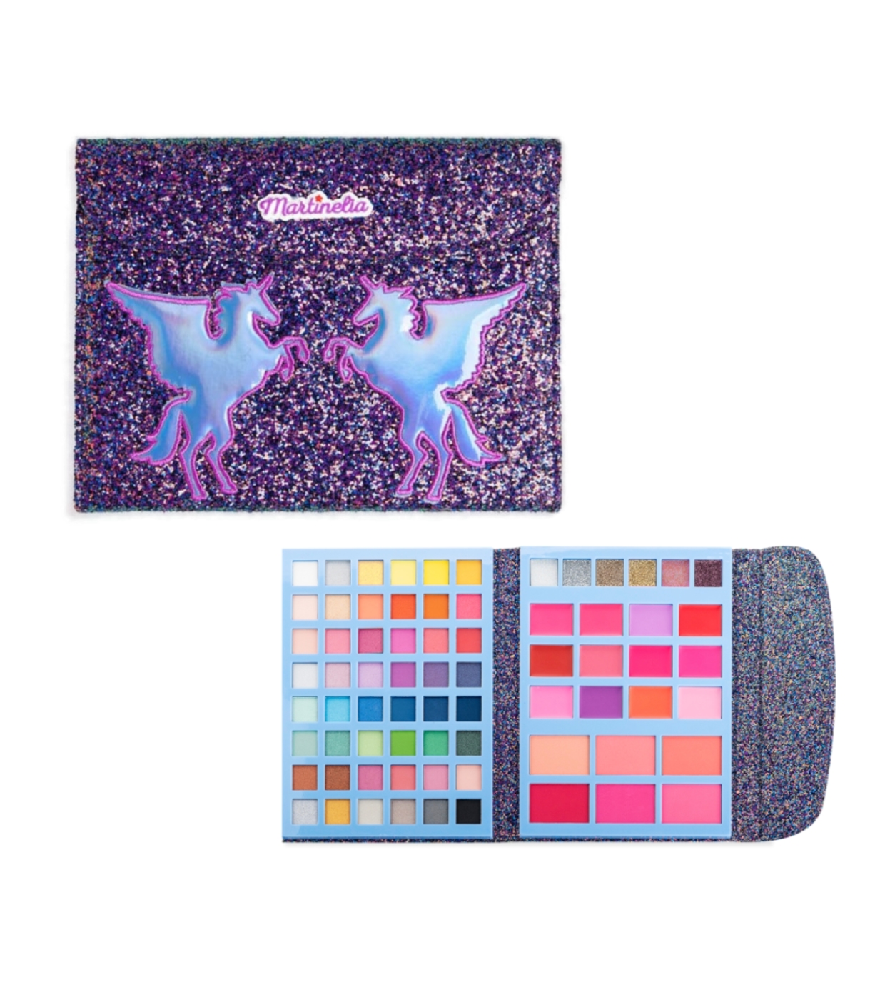 Este kit de maquillaje es para los niños más fanánitos de los unicornios, esta paleta de maquillaje en formato libro se convertirá en su nueva obsesión.