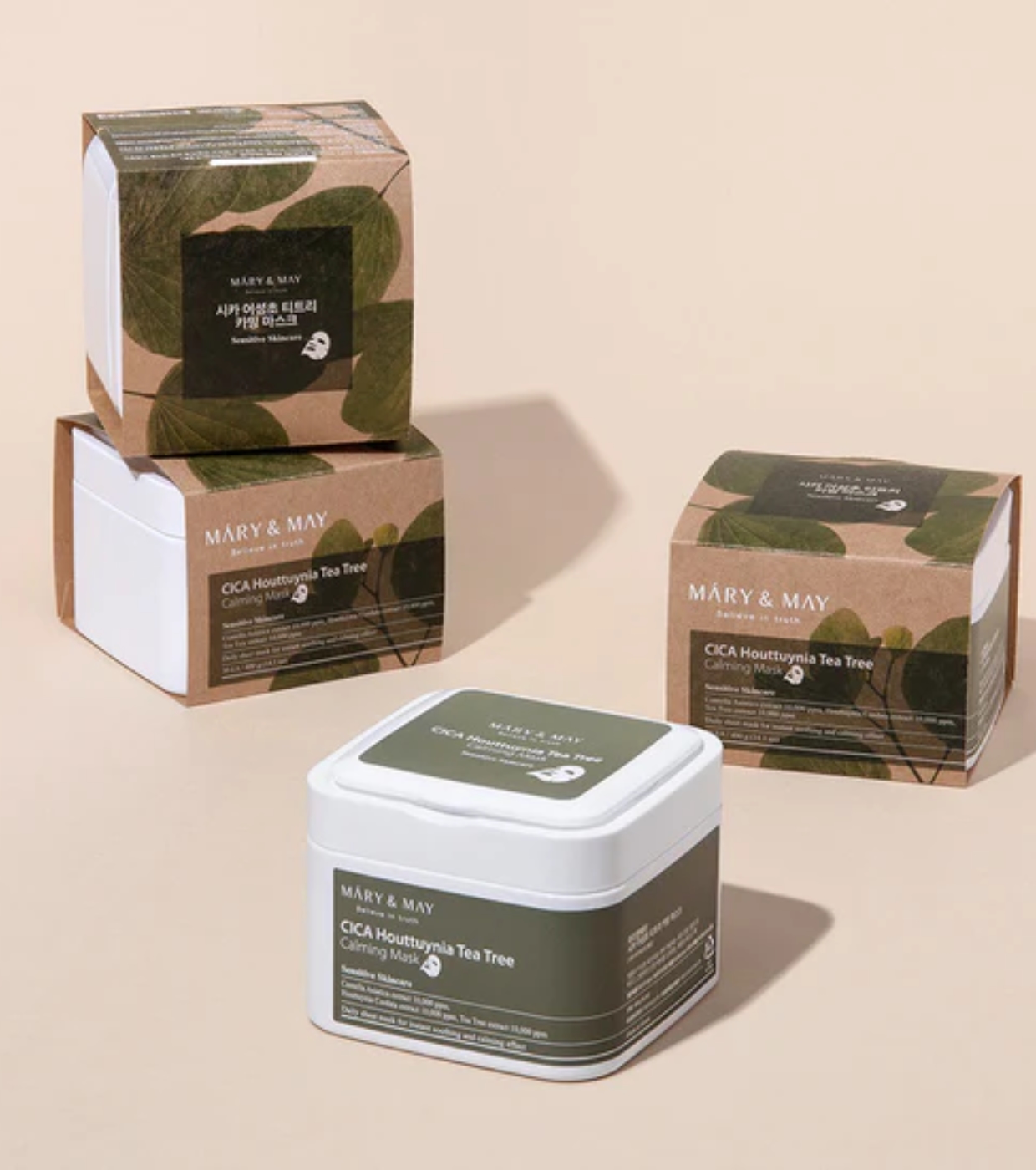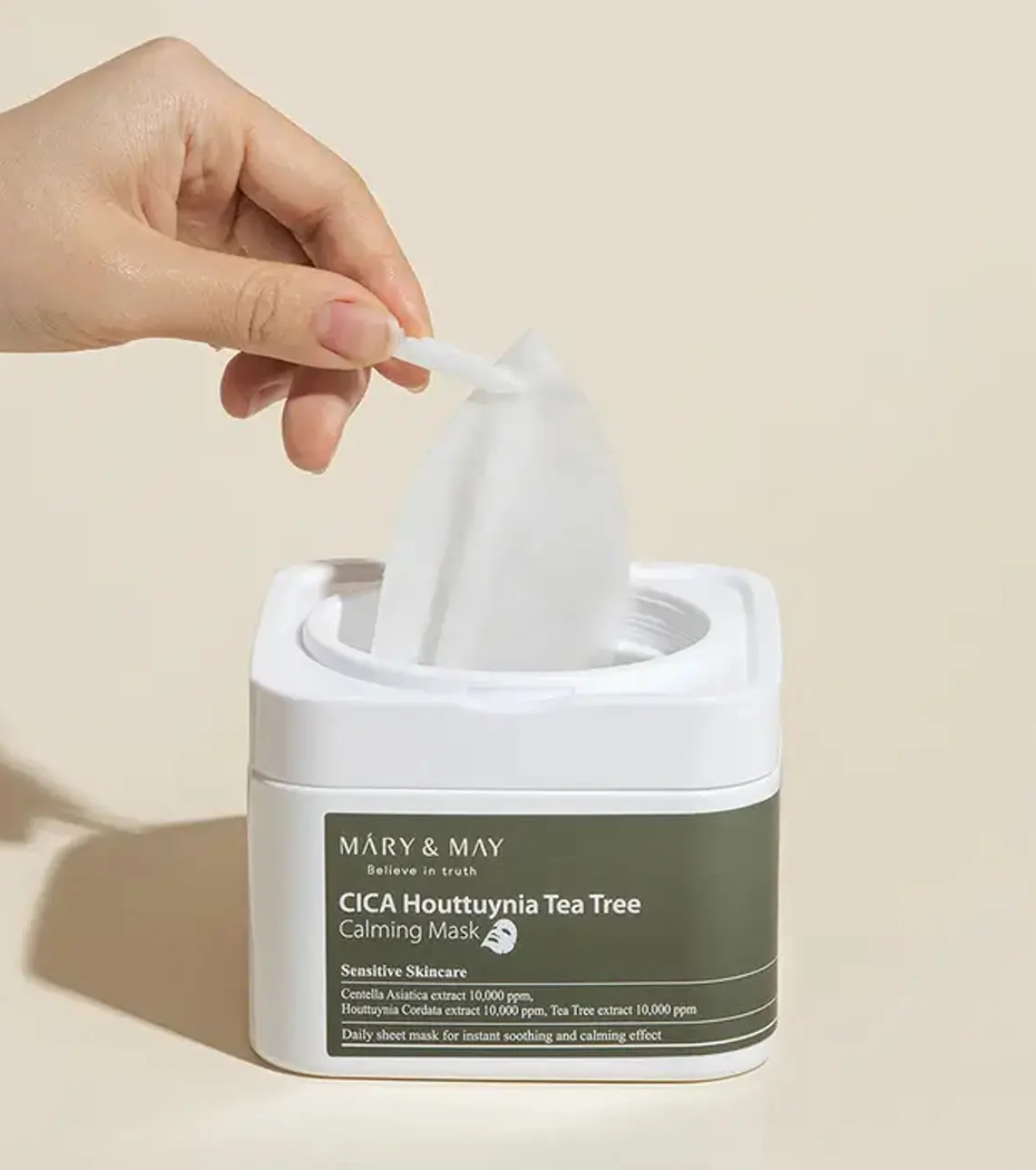 Descubre el poder calmante de la naturaleza con la mascarilla Cica Houttuynia Tea Tree de Mary & May, una mascarilla hipoalergénica en formato estuche, ideal para uso diario durante 30 días.