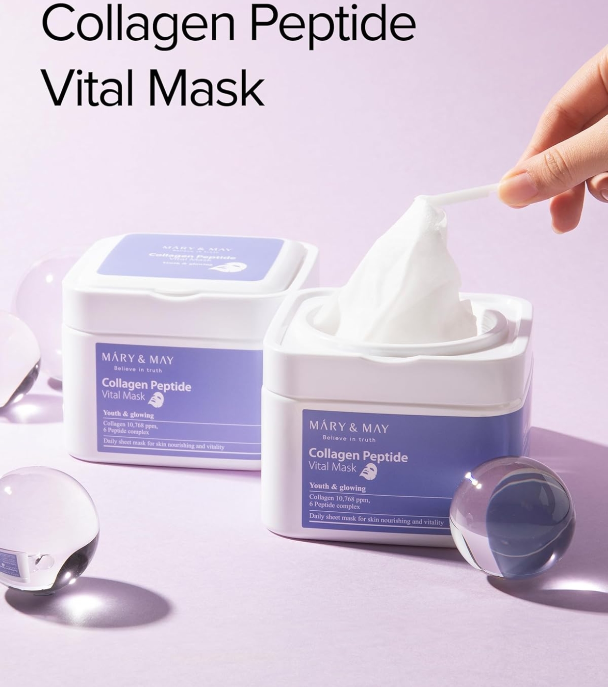 La mascarilla rejuvenedora con colágeno y péptidos de Mary & May es una solución definitiva para el cuidado de la piel con propiedades antienvejecimiento e hidratantes.