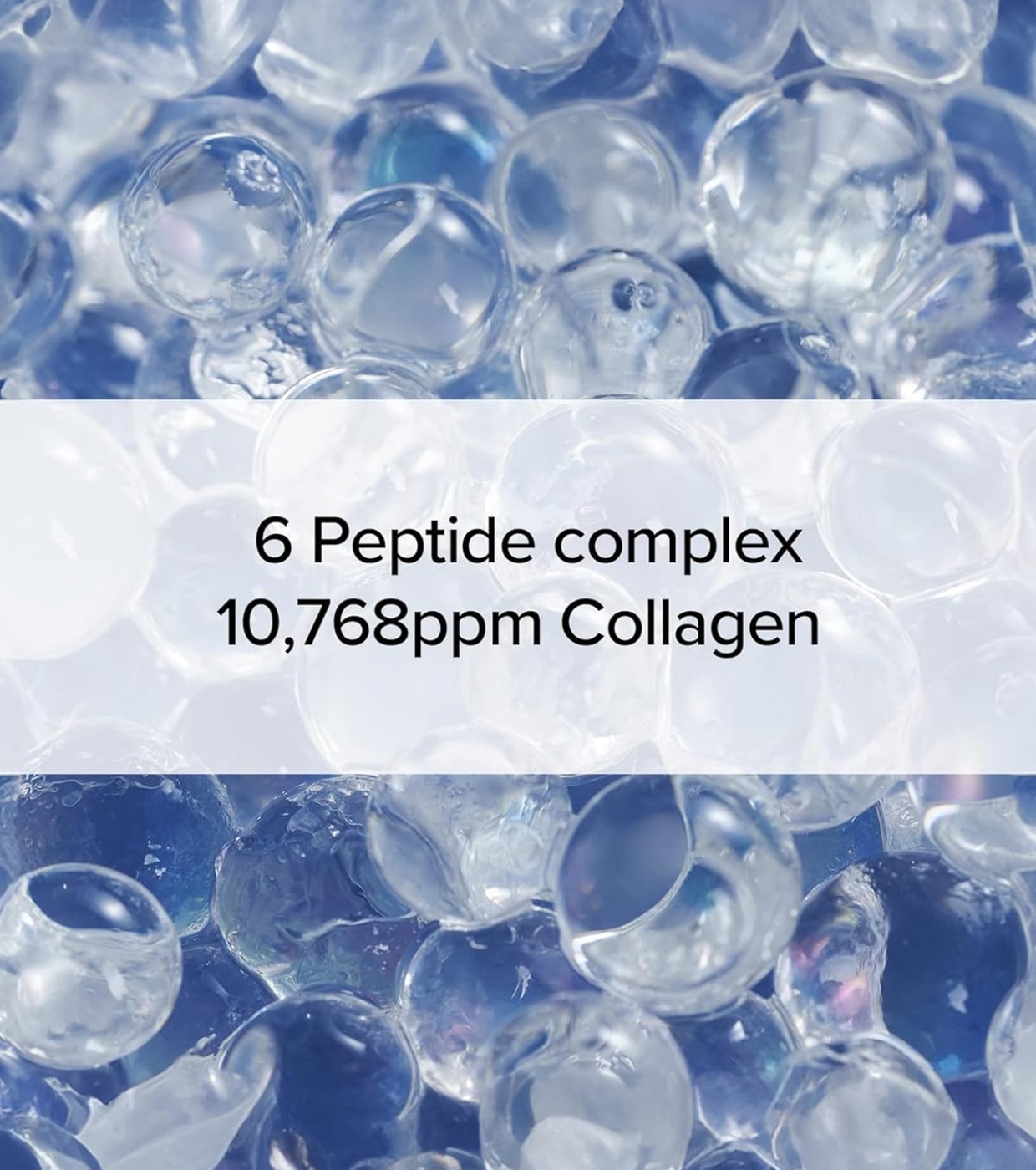 Esta mascarilla está impregnada con una poderosa combinación de colágeno y seis tipos de péptidos, junto con adenosina y alantoína para mejorar la firmeza, la elasticidad y la hidratación de tu piel.