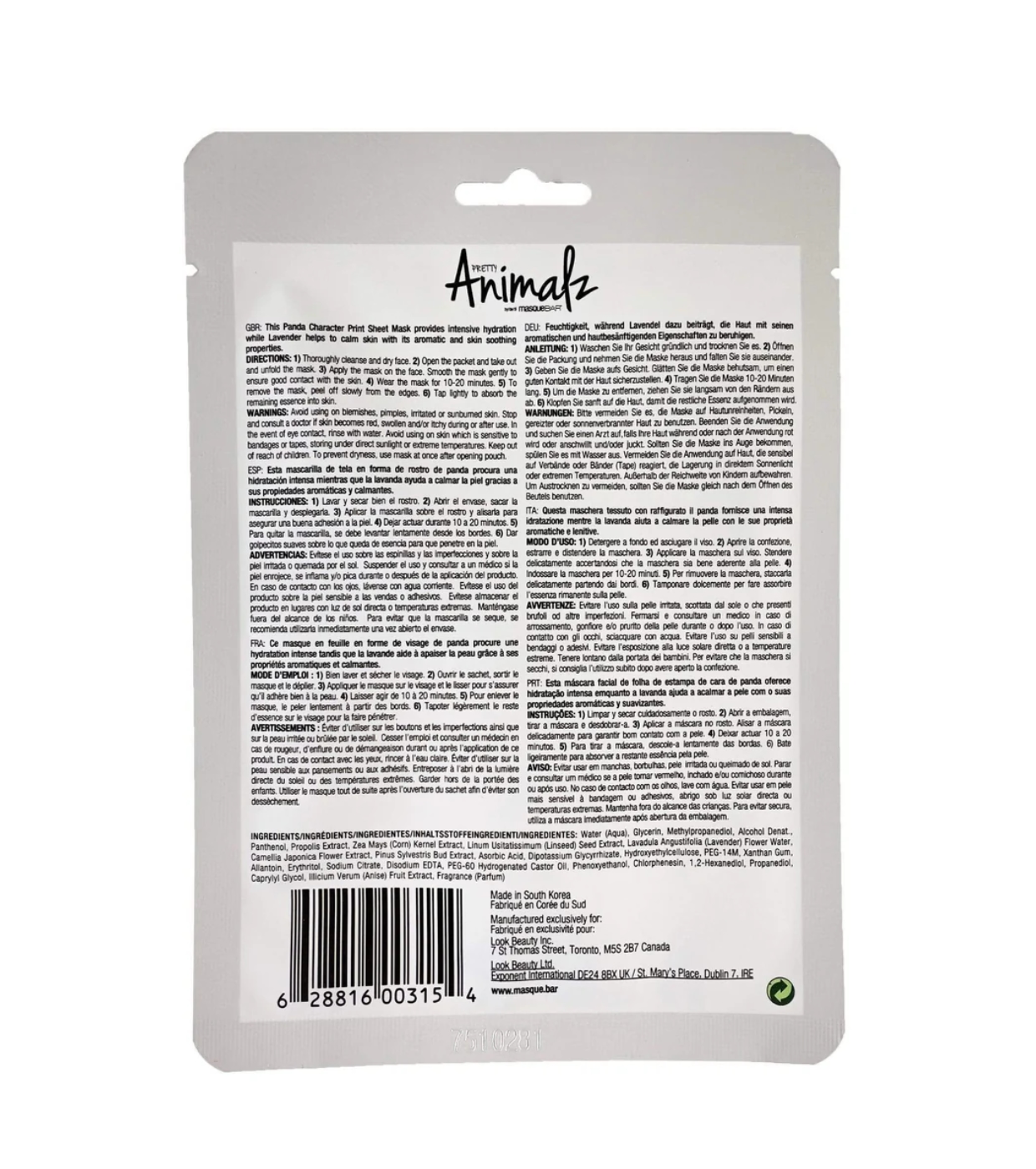 Dale a tu piel el cuidado que merece con la mascarilla facial Pretty Animalz Panda de masque Bar, diseñada para proporcionar una hidratación intensiva mientras calma y revitaliza con los beneficios aromáticos de la lavanda.