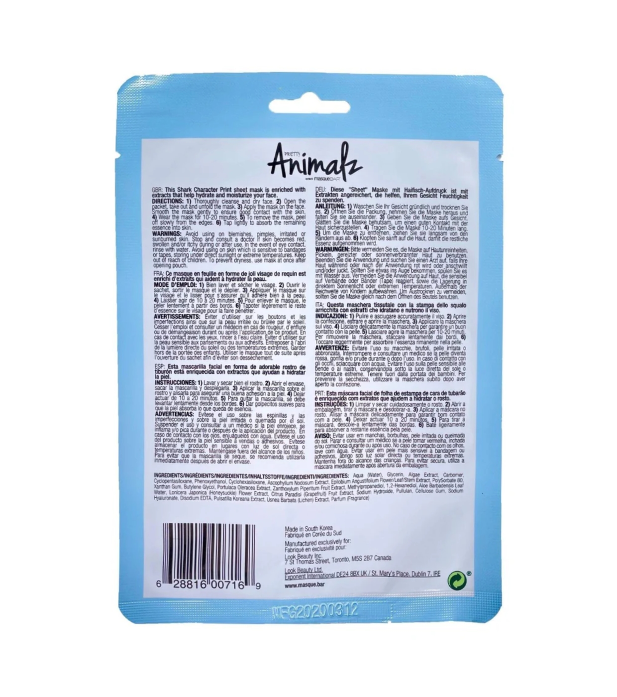 Sumérgete en una experiencia de cuidado facial única con la mascarilla facial Pretty Animalz Shark de masque BAR.