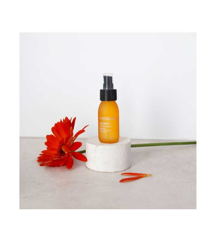El extracto de caléndula calma y regenera la piel y el agua de rosa de Damasco la relaja y regula.