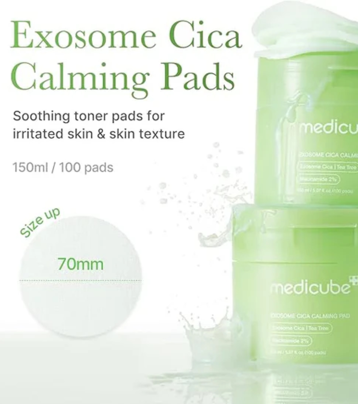 Disfruta de un cuidado eficaz y suave con las almohadillas calmantes con Exosome Cica, niacinamida y ácido hialurónico de Medicube, diseñadas para calmar, hidratar y equilibrar tu piel, revelando una tez más clara, uniforme y revitalizada.