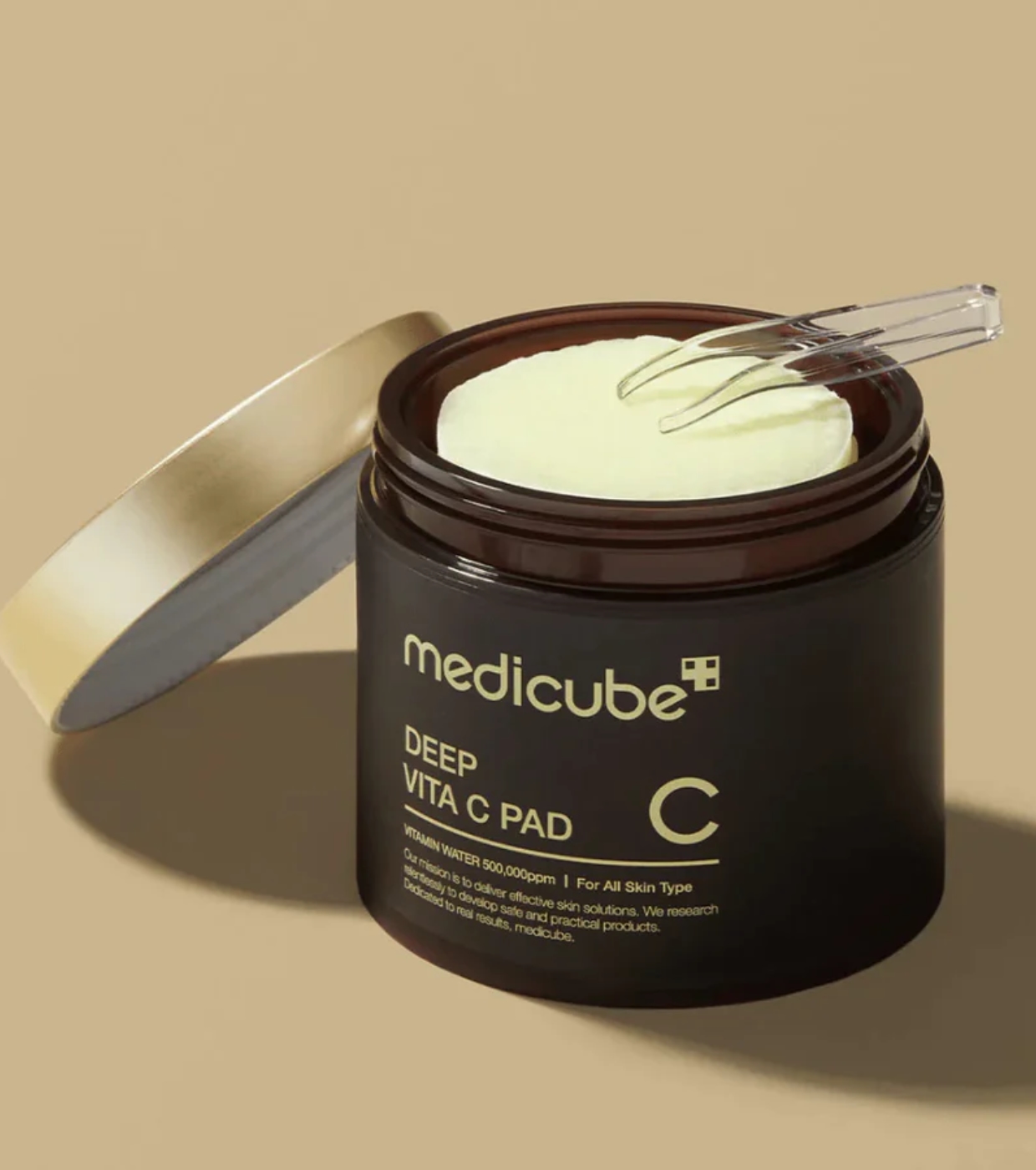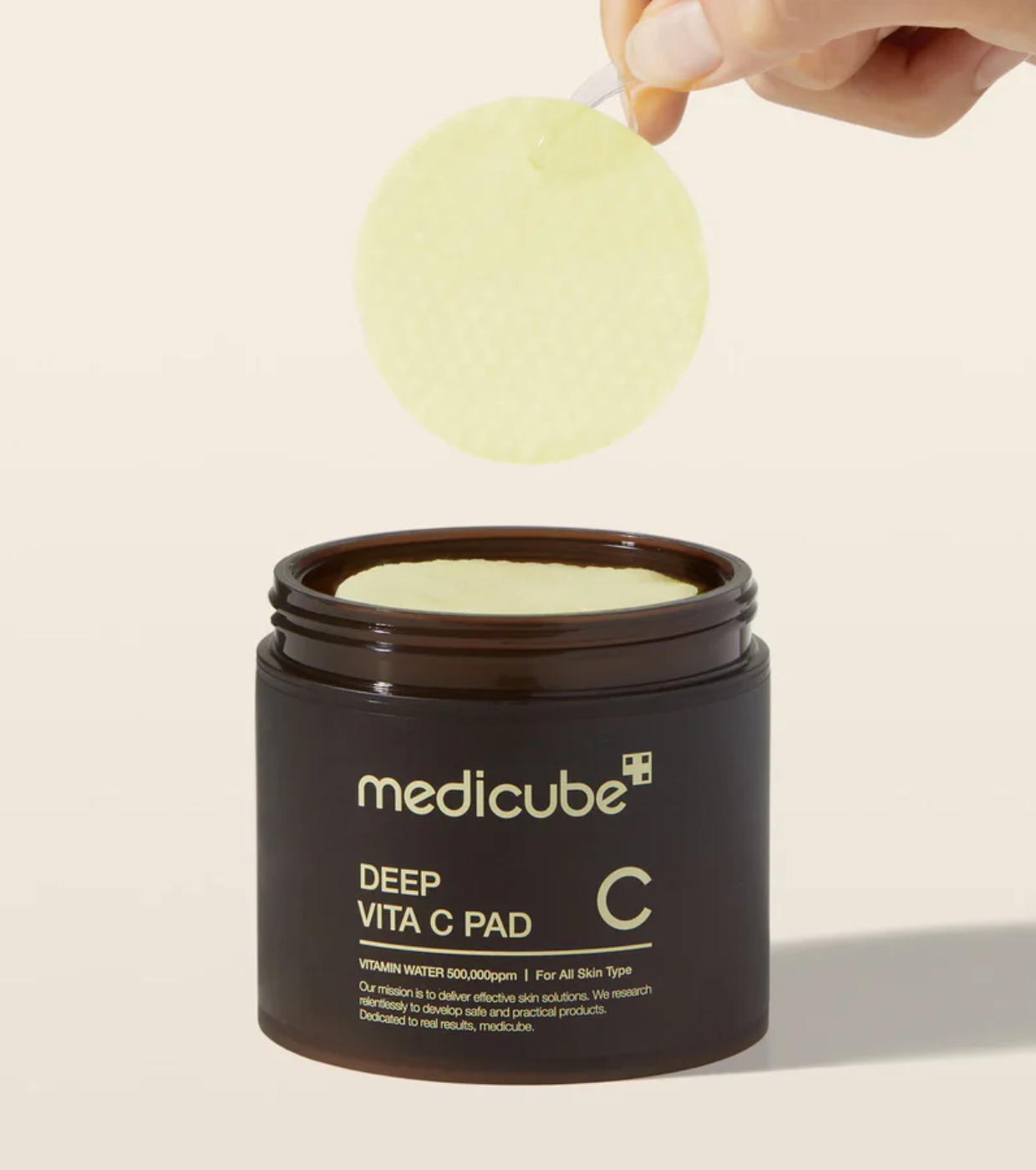 Descubre el poder iluminador de estas almohadillas exfoliantes enriquecidas con vitamina C y espino cerval de mar Deep Vita C de Medicube, formuladas para transformar tu piel en solo 4 semanas.