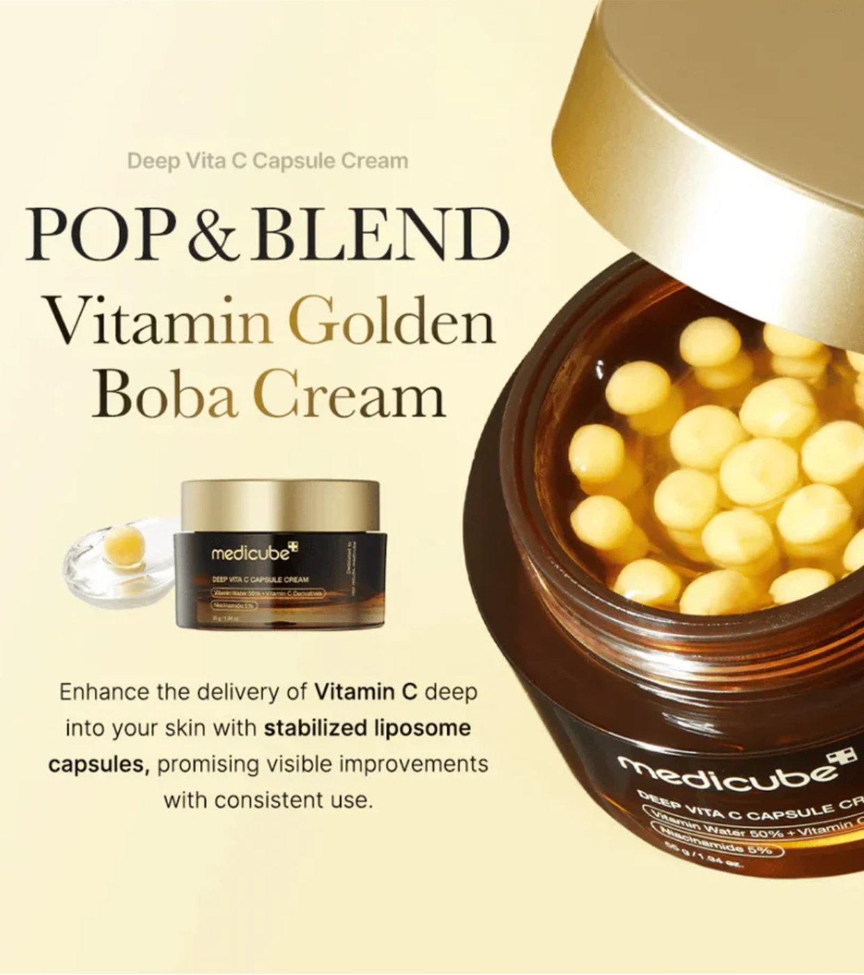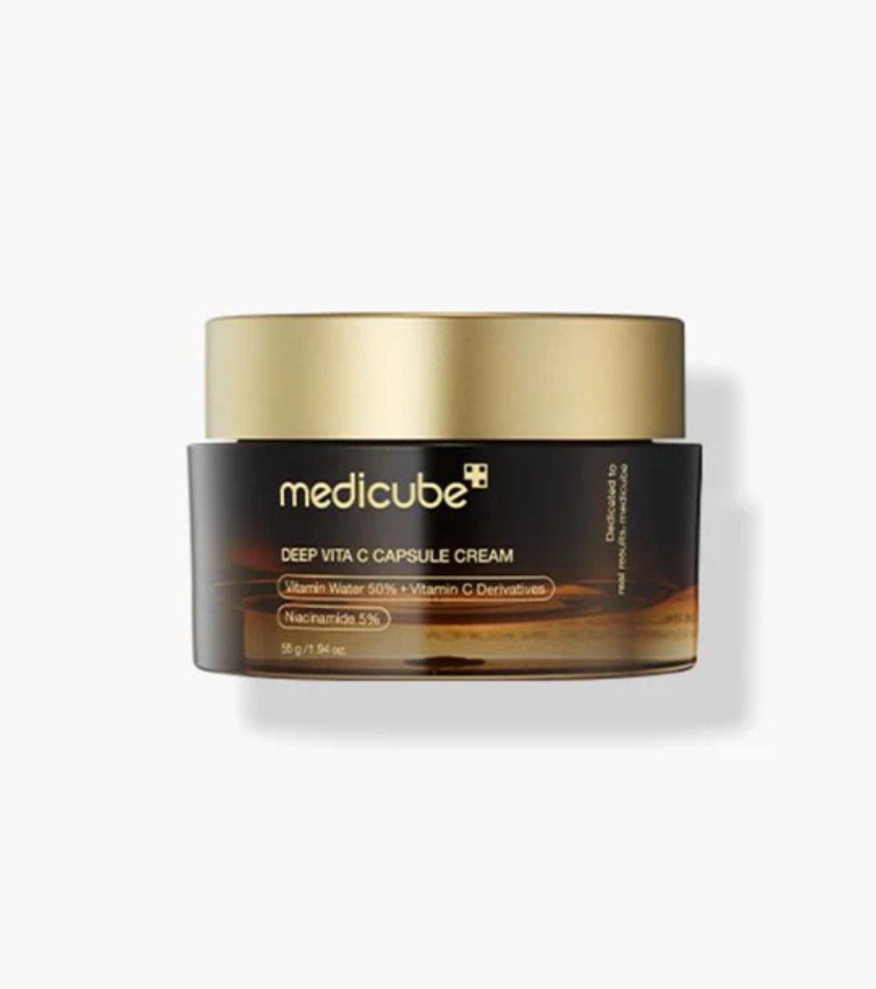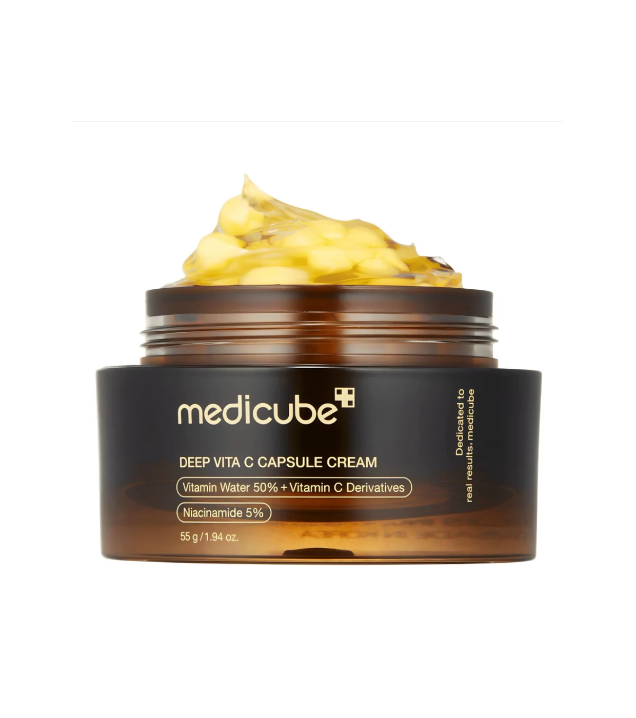 Descubre la crema facial iluminadora Deep Vita C Capsule Cream de Medicube, la crema revolucionaria que combate el tono desigual, las manchas y la falta de luminosidad, dejando tu piel radiante, uniforme y revitalizada.