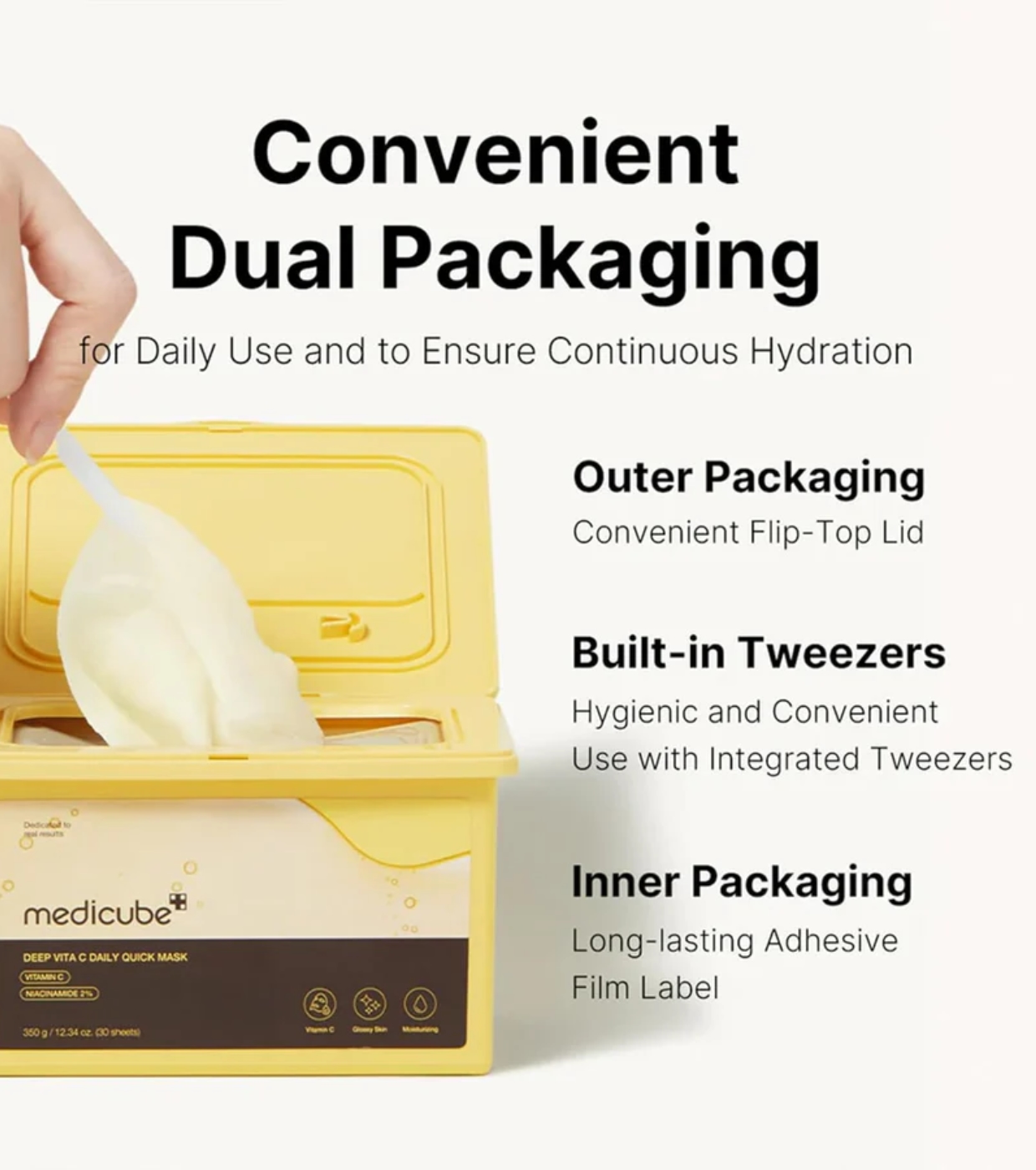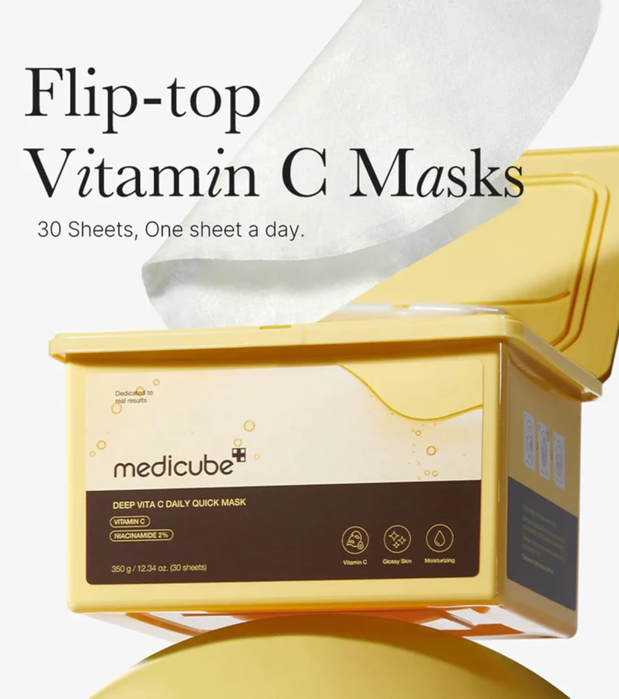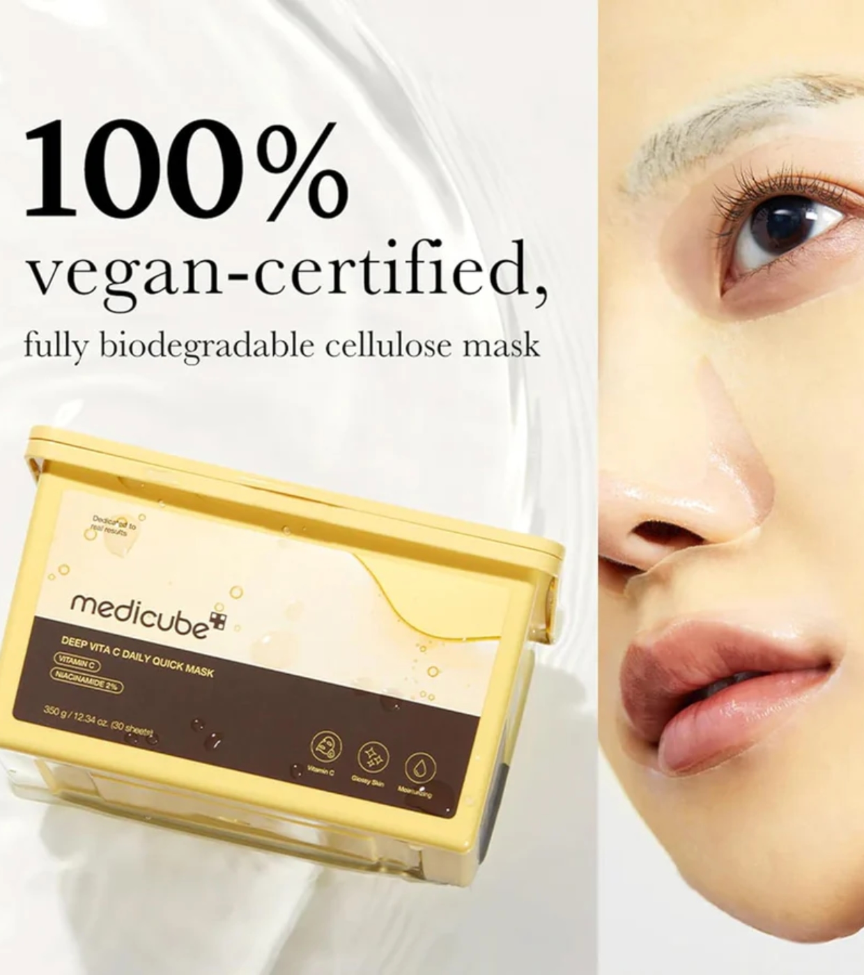 La mascarilla de celulosa con vitamina C Daily Quick de Medicube es la solución perfecta para iluminar y revitalizar tu piel en solo 60 segundos.
