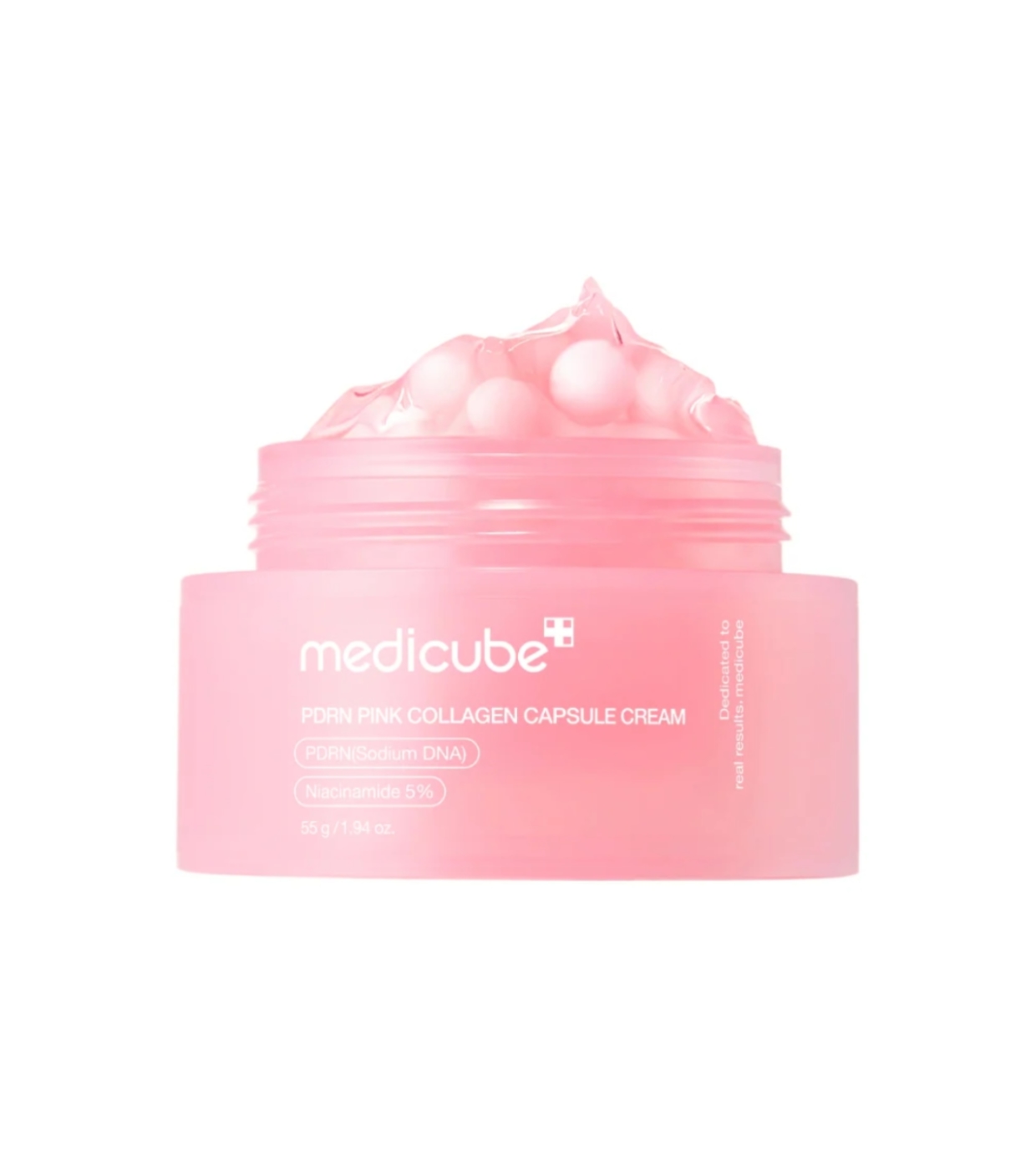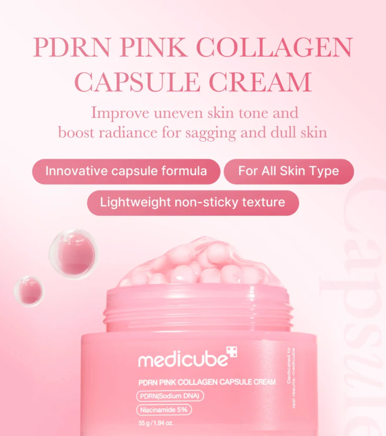 Esta crema iluminadora con cápsulas de colágeno rosa de Medicube está formulada para mejorar el tono desigual, revitalizar las pieles apagadas y aportar un extra de firmeza y luminosidad.