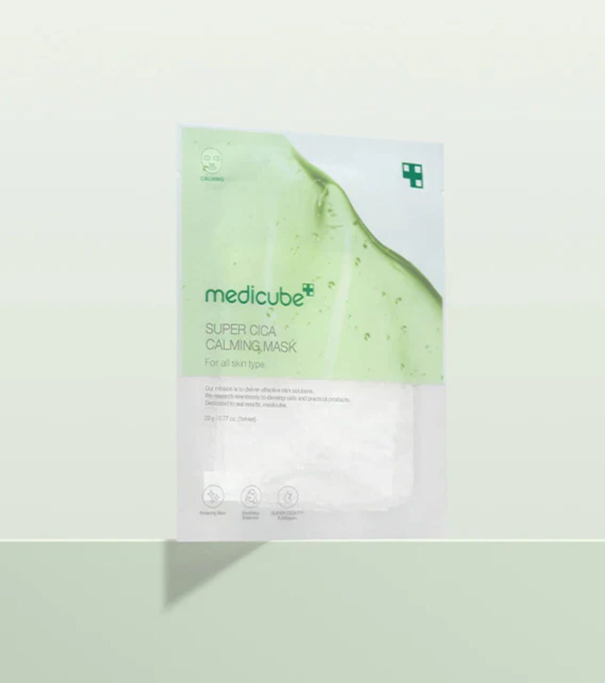 Revitaliza y calma tu piel sensible con esta mascarilla calmante con Super Cica 7 de Medicube, especialmente diseñada para hidratar profundamente, reducir el enrojecimiento y fortalecer la barrera cutánea.