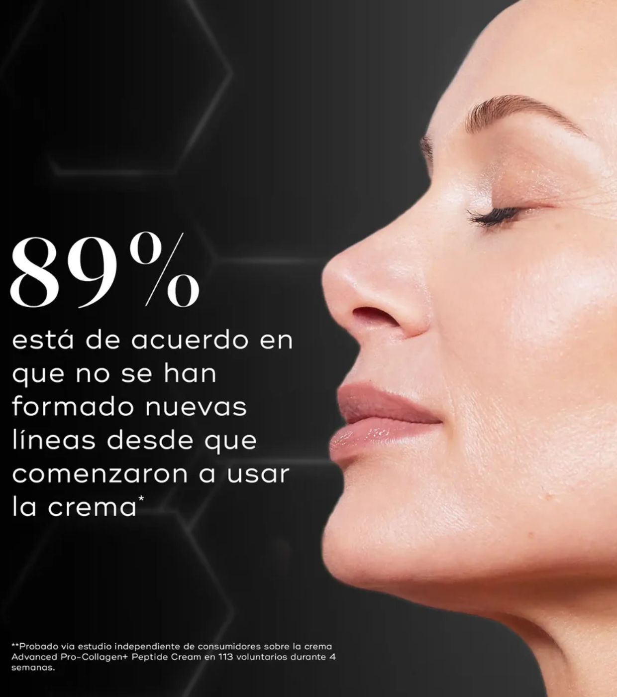 Después de limpiar la piel por la mañana y por la noche, aplica la crema Advanced Pro-Collagen+ Peptide Cream de manera uniforme en el rostro, el cuello y el escote.